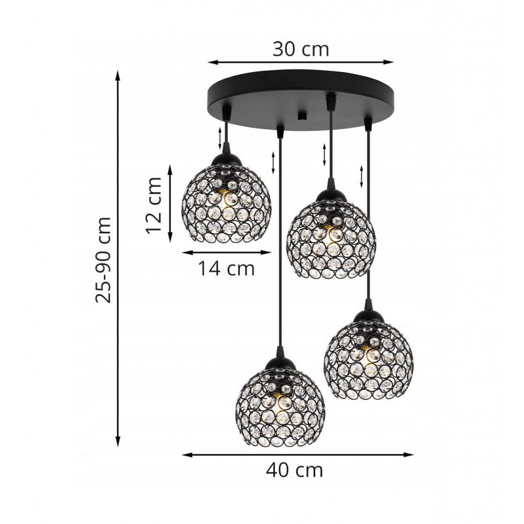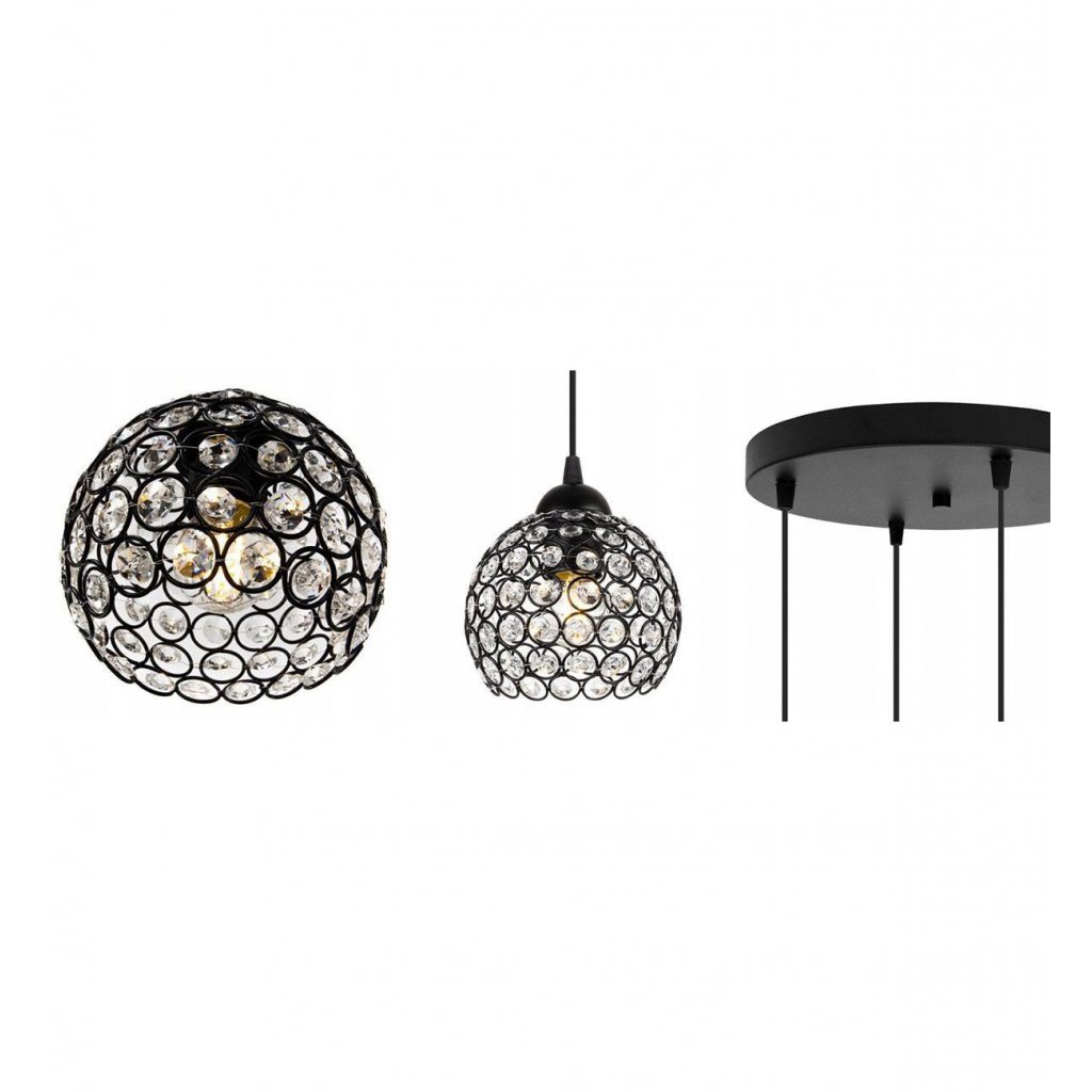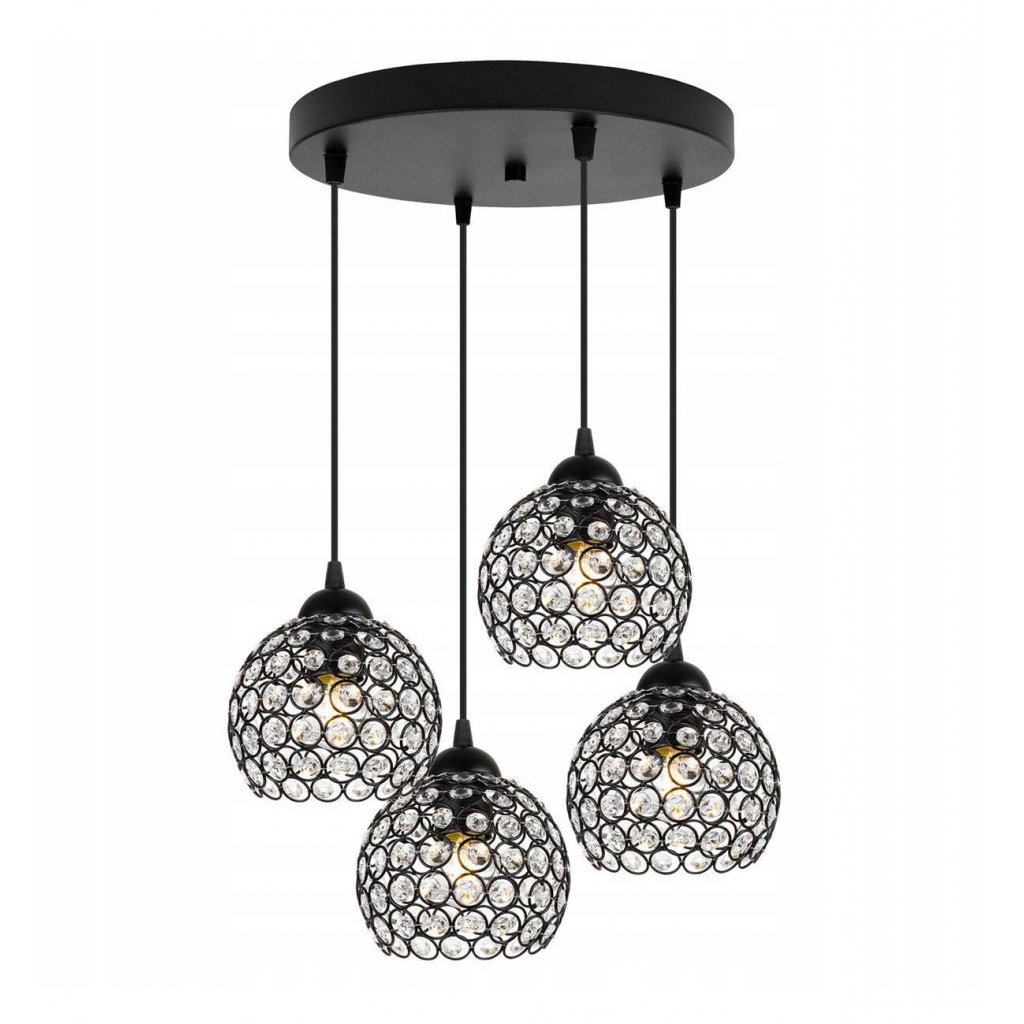 Závěsné svítidlo Crystal, 4x černé křišťálové stínítko,