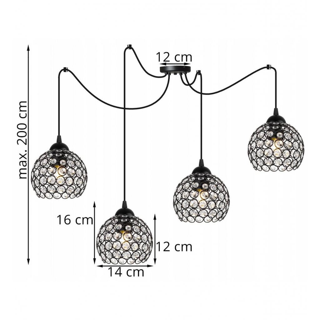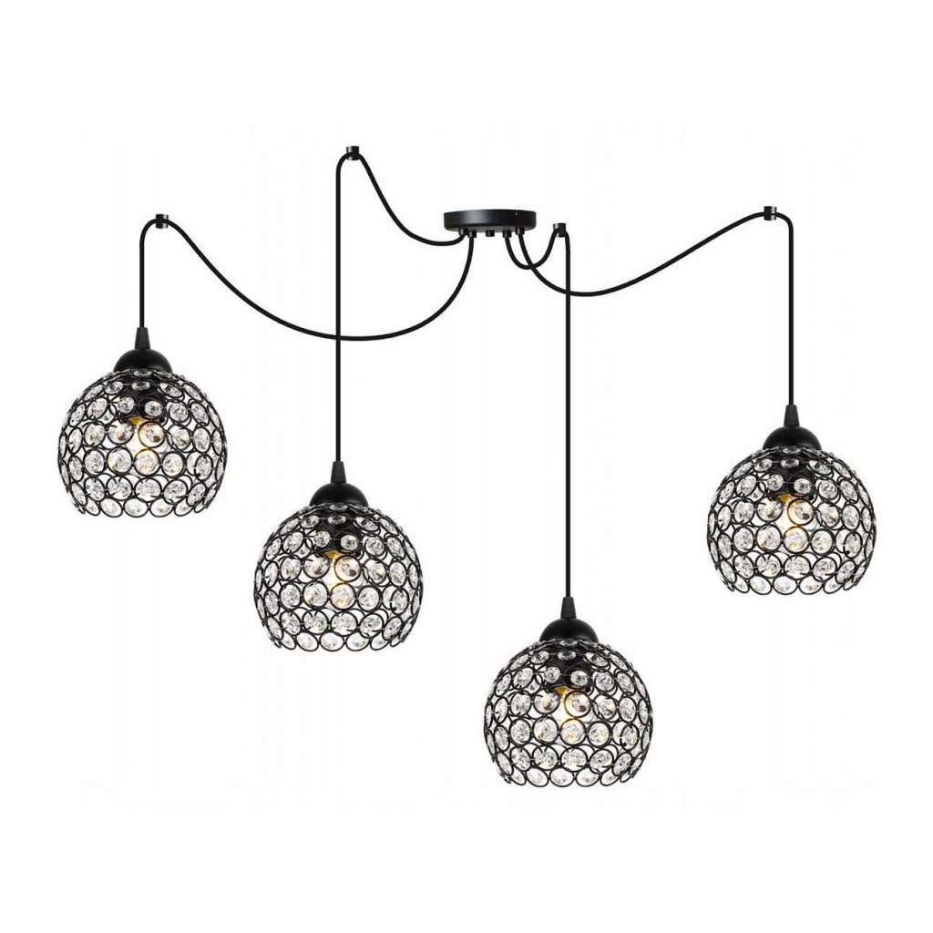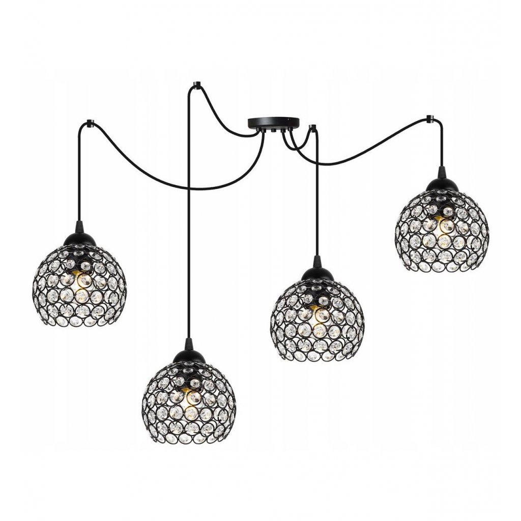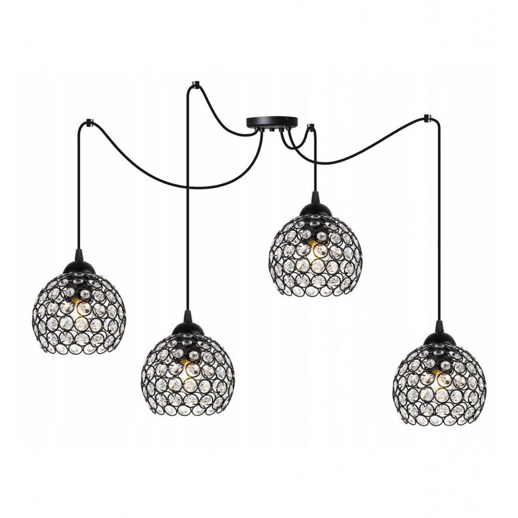 Závěsné svítidlo Crystal Spider, 4x černé křišťálové stínítko