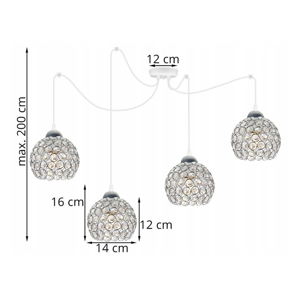 Závěsné svítidlo Crystal Spider, 4x stříbrné křišťálové stínítko, (chromové uchycení), w