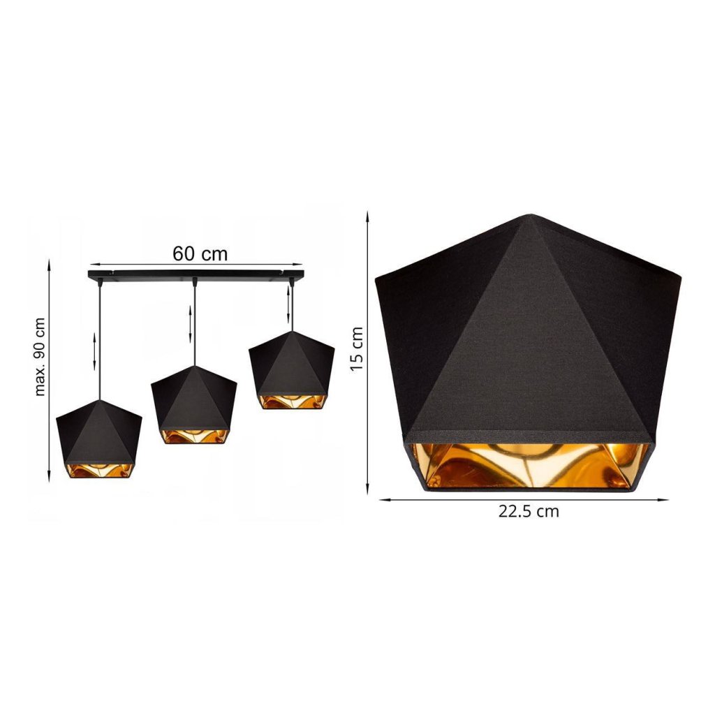 Závěsné svítidlo Diamond Gold, 3x černé/zlaté textilní stínítko