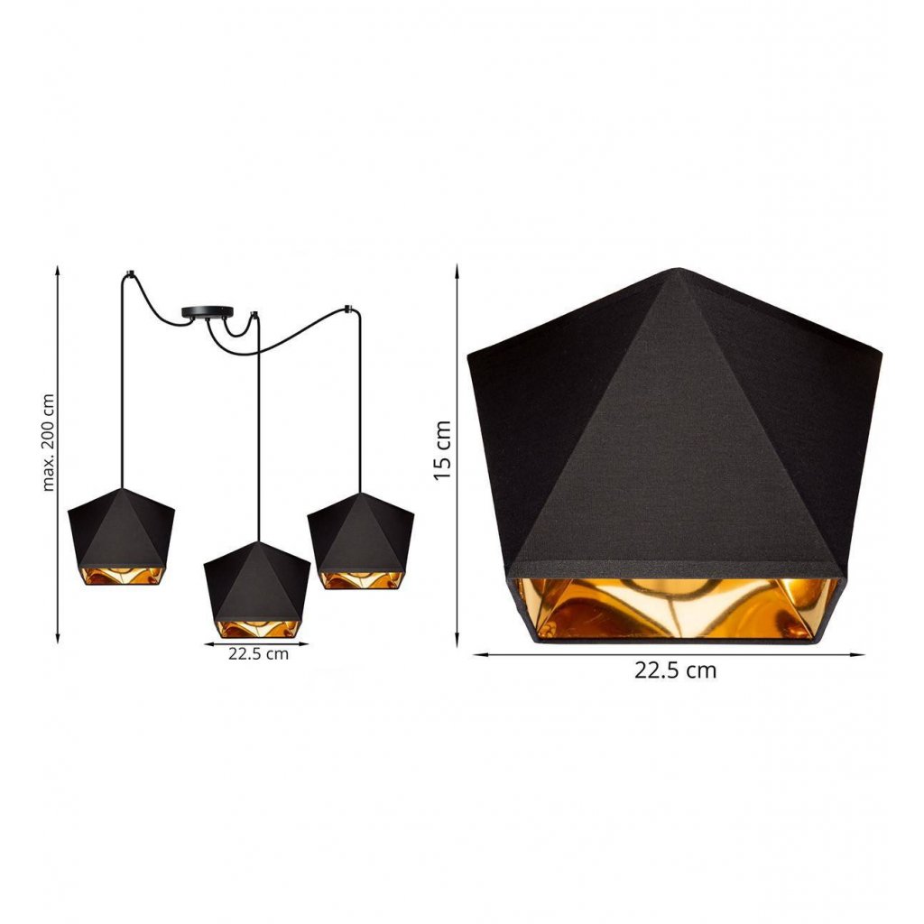 Závěsné svítidlo Diamond Gold Spider, 3x černé/zlaté textilní stínítko