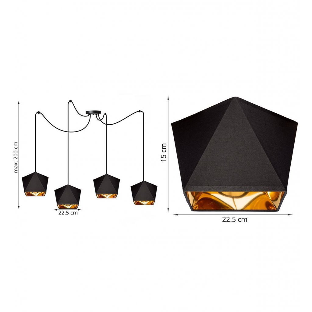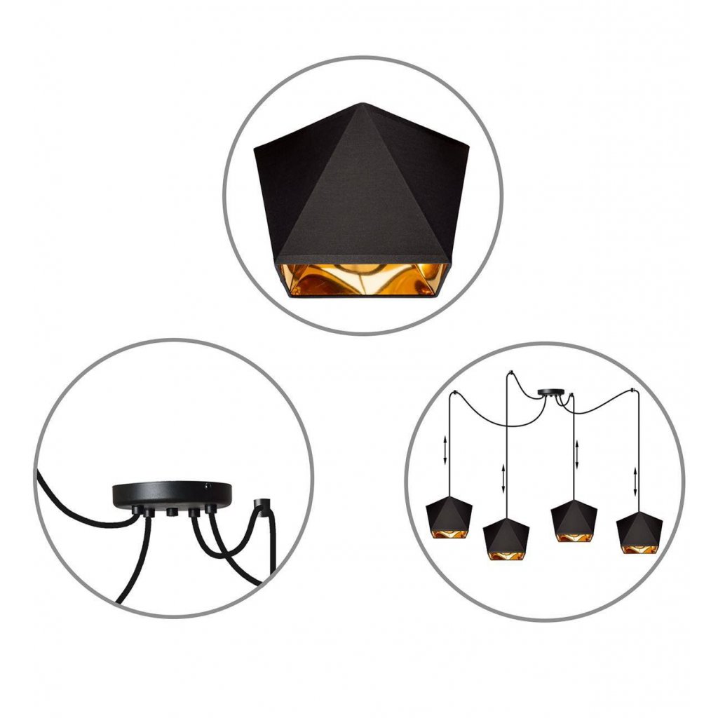 Závěsné svítidlo Diamond Gold Spider, 4x černé/zlaté textilní stínítko