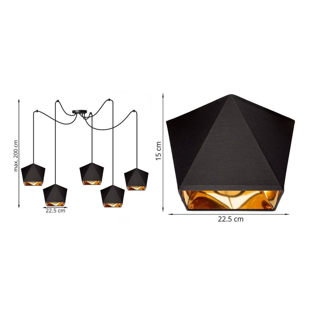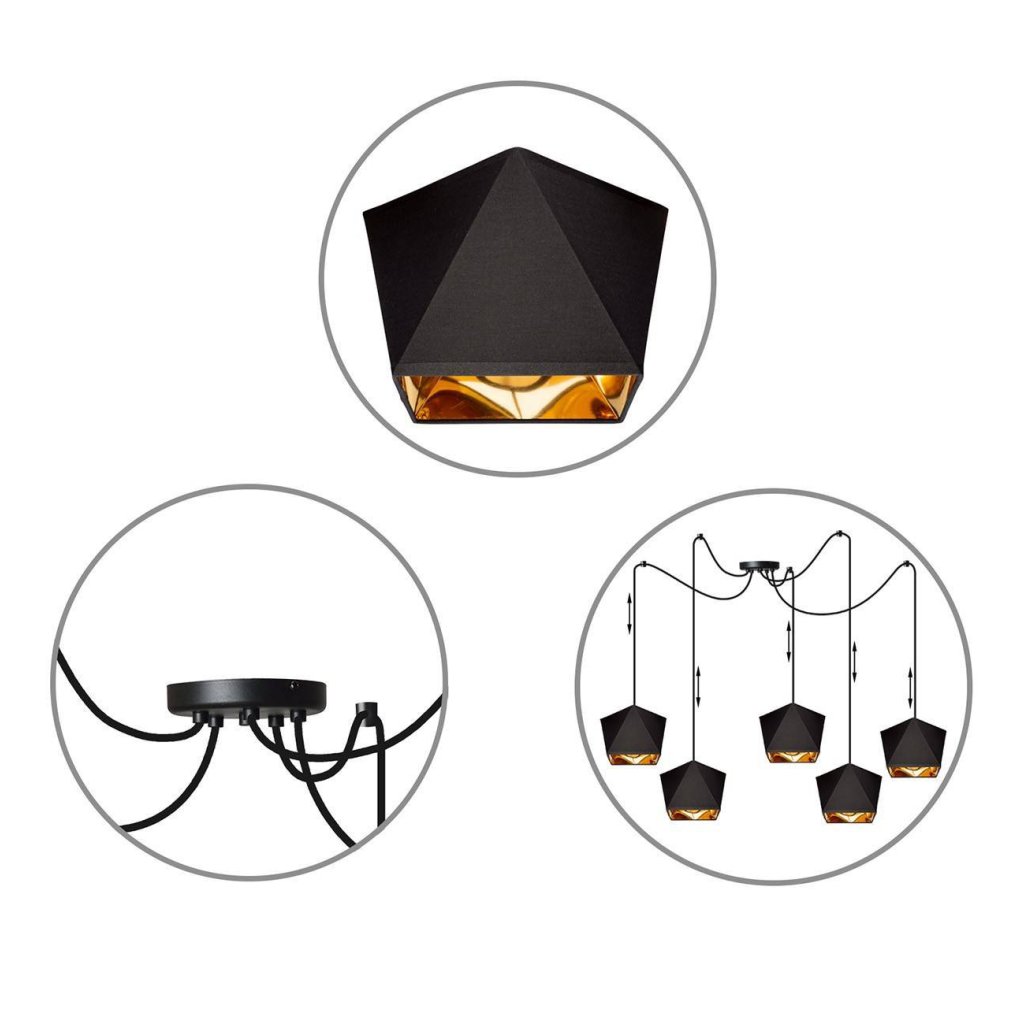 Závěsné svítidlo Diamond Gold Spider, 5x černé/zlaté textilní stínítko