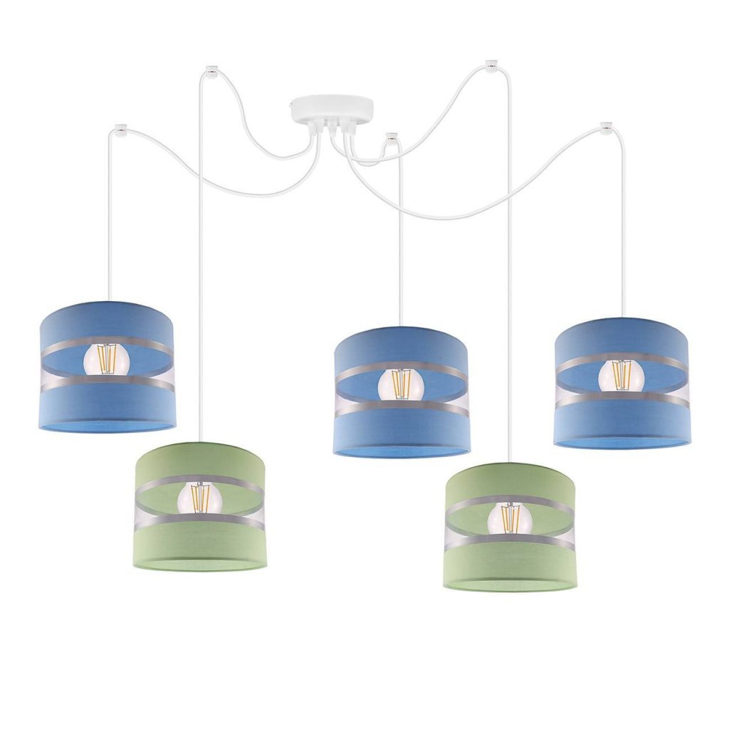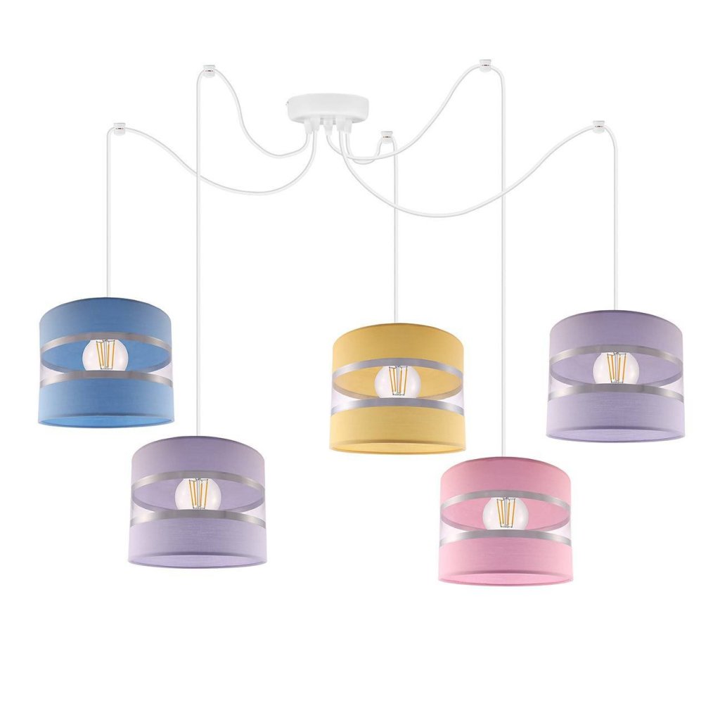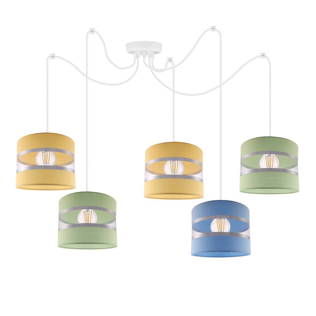 Závěsné svítidlo Elegance Spider, 5x textilní stínítko (mix 8 barev), w
