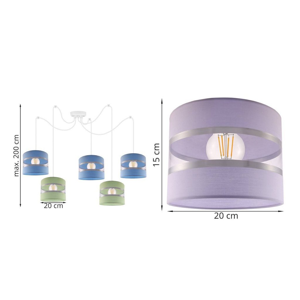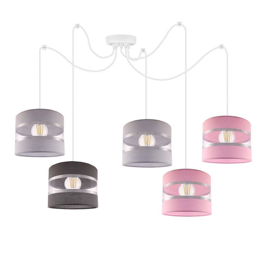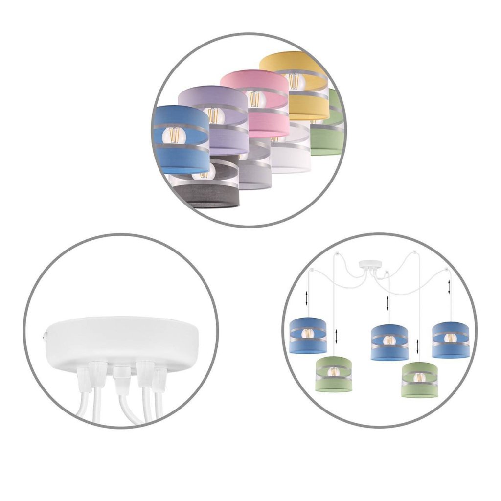 Závěsné svítidlo Elegance Spider, 5x textilní stínítko (mix 8 barev), w