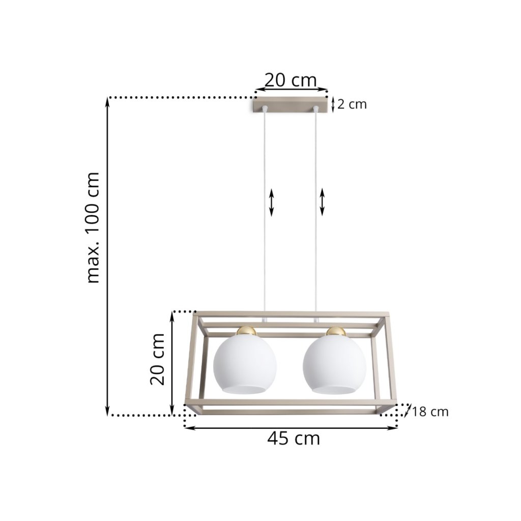 Závěsné svítidlo Eliza Cage, 2x bílé skleněné stínítko v kovovém rámu