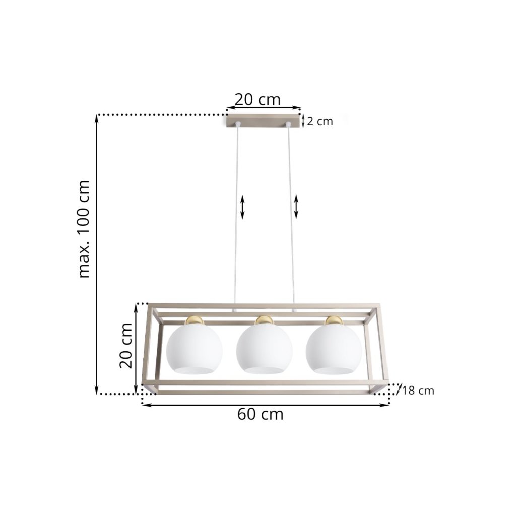 Závěsné svítidlo Eliza Cage, 3x bílé skleněné stínítko v kovovém rámu