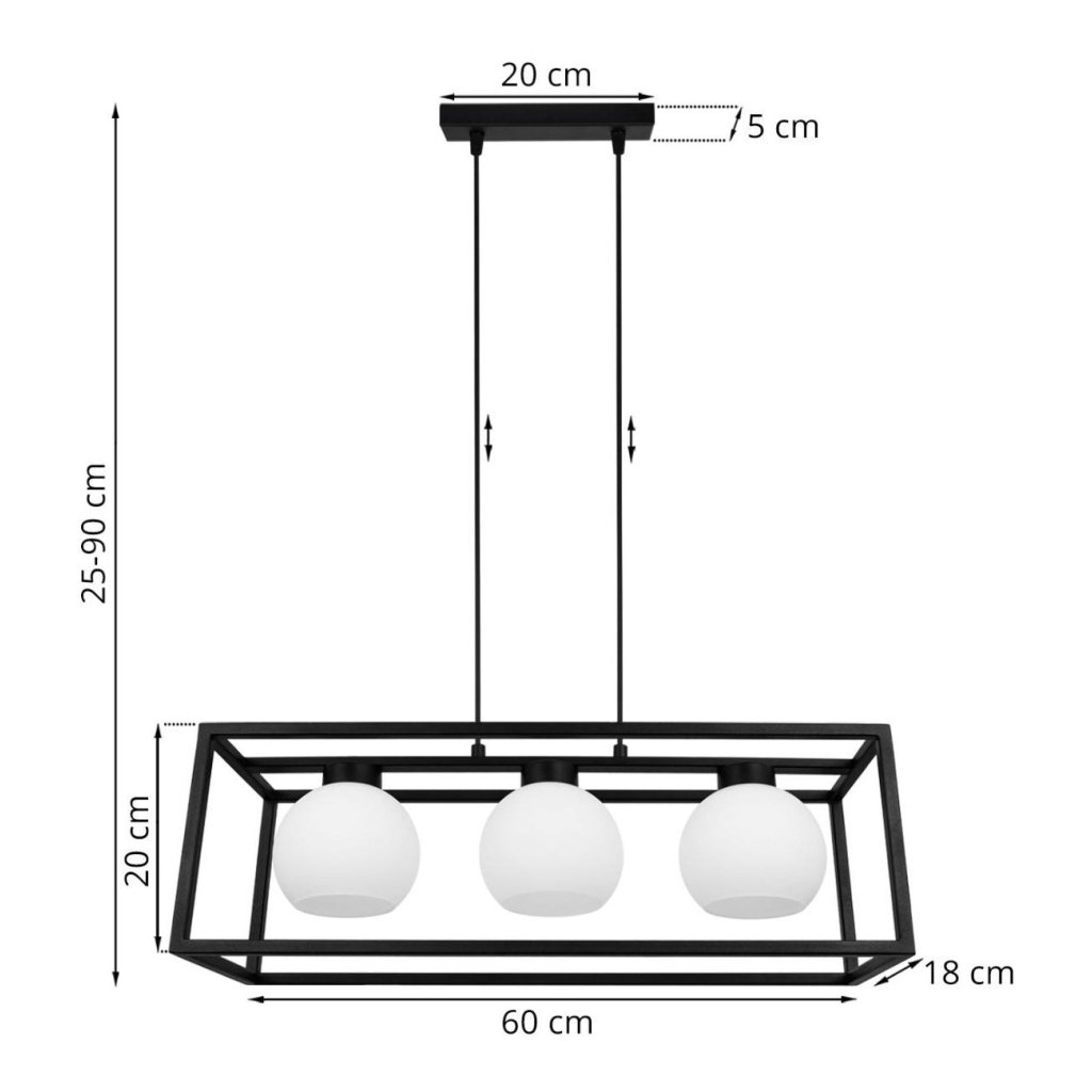 Závěsné svítidlo Eliza Cage, 3x bílé skleněné stínítko v kovovém rámu