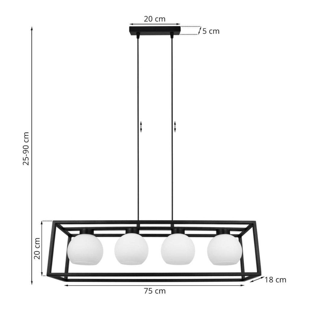 Závěsné svítidlo Eliza Cage, 4x bílé skleněné stínítko v kovovém rámu