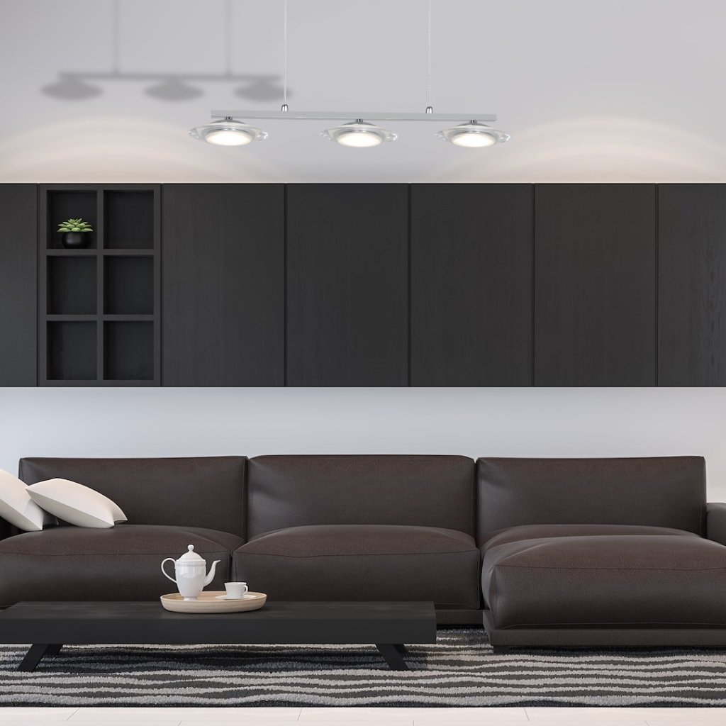 Závěsné svítidlo ELLIPSE je elegantní LED svítilna určená k zavěšení pod strop. Model Ellipse 416 je vybaven 3 světelnými zdroji , které jsou napevno zabudovány do svítidla ve formě LED modulů o celkovém výkonu 15 W (což odpovídá 79 W klasické žárovky). Světelný tok 1120 lm a neutrální bílá barva světla o teplotě 4000 K zajišťují příjemné a rovnoměrné osvětlení místnosti.