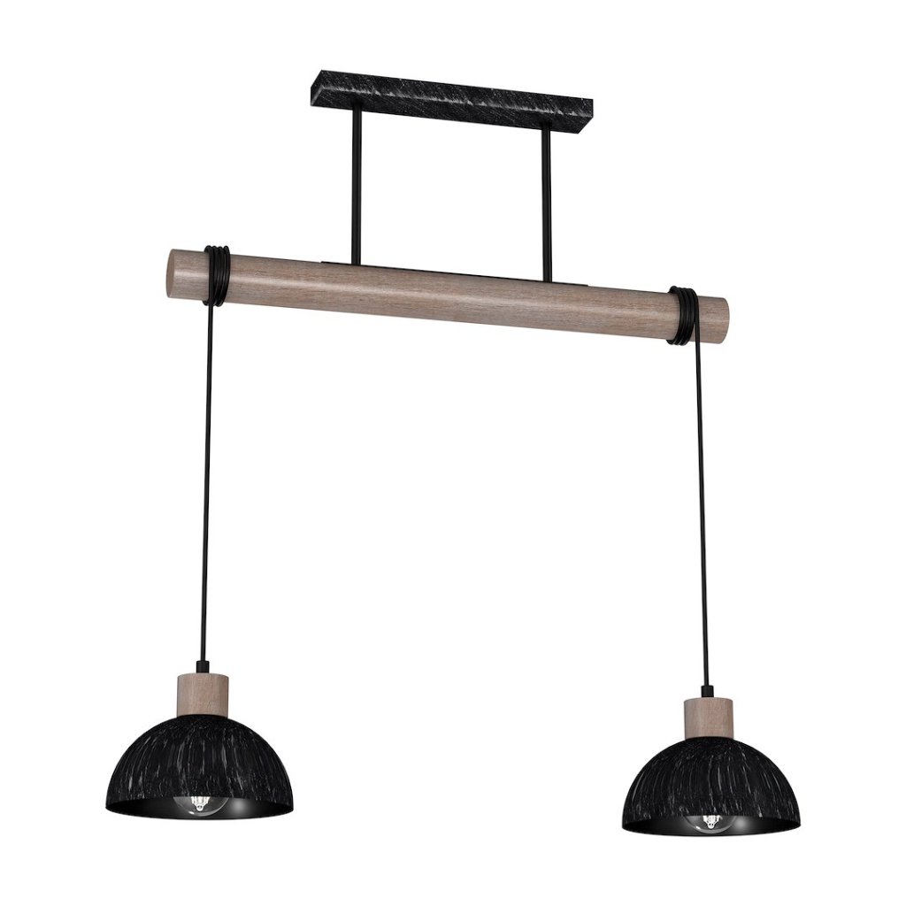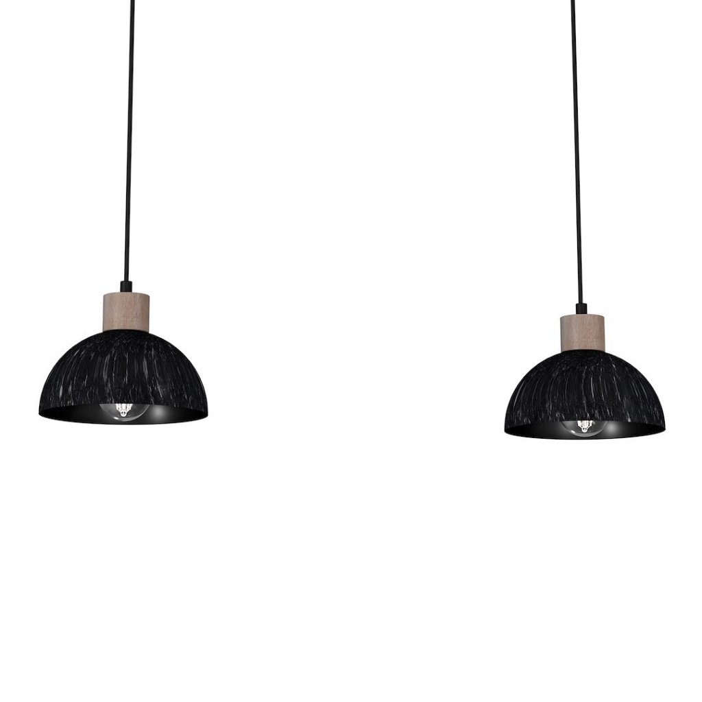 Závěsné svítidlo Erik, 2x černé kovové stínítko, b/dřevo