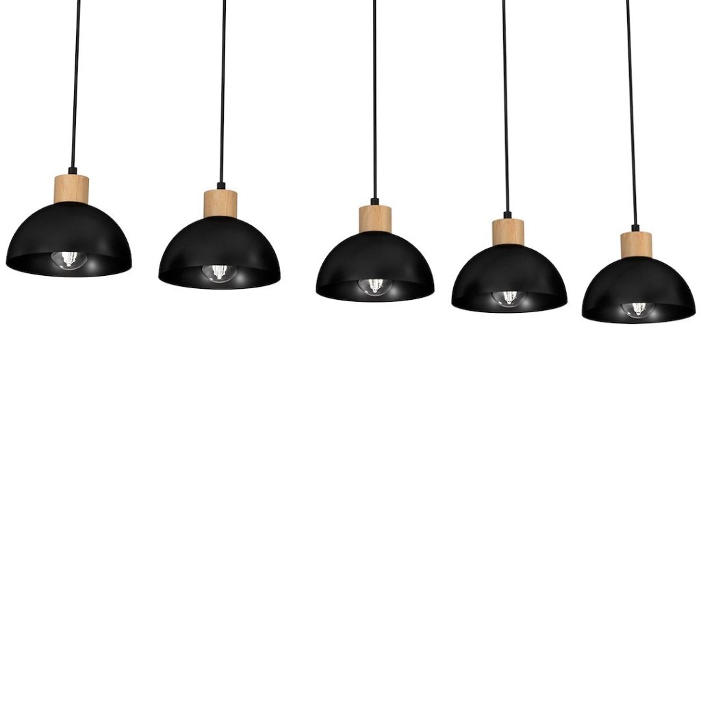 Závěsné svítidlo Erik, 5x černé kovové stínítko, b/dřevo
