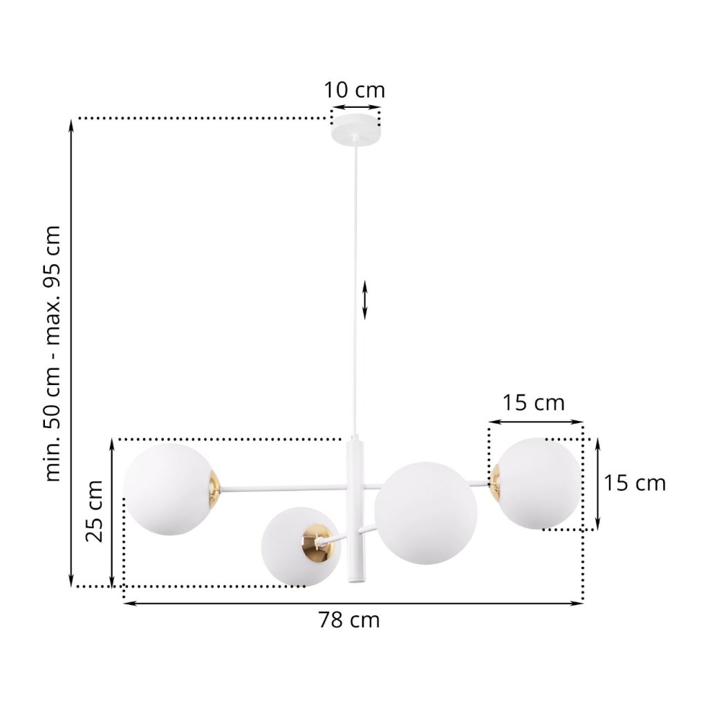 Závěsné svítidlo Florence, 4x bílé skleněné stínítko, W/G