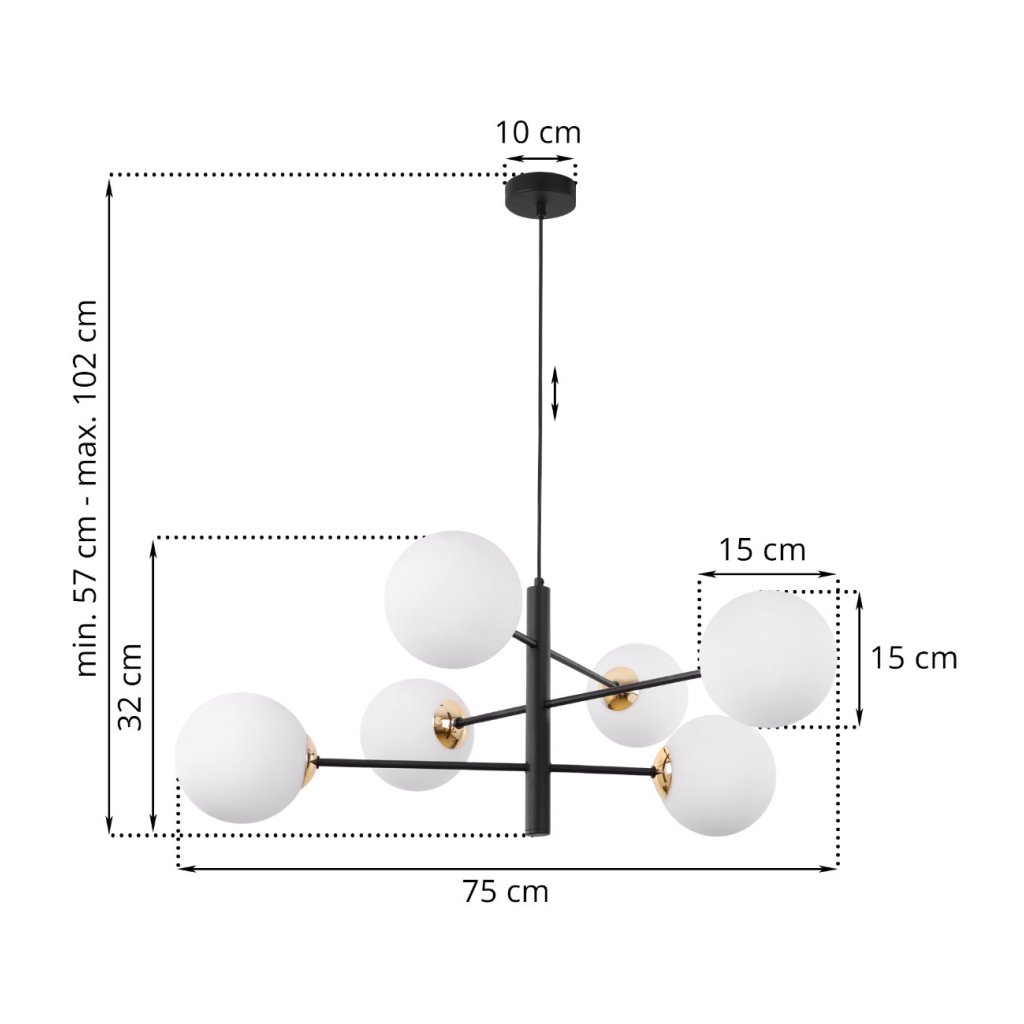 Závěsné svítidlo Florence, 6x bílé skleněné stínítko, B/G