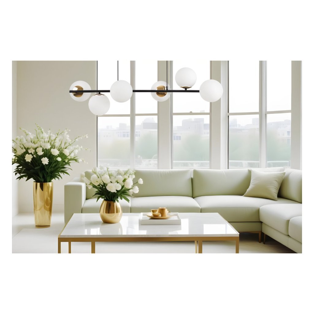 Závěsné svítidlo Florence, 6x bílé skleněné stínítko, B/G