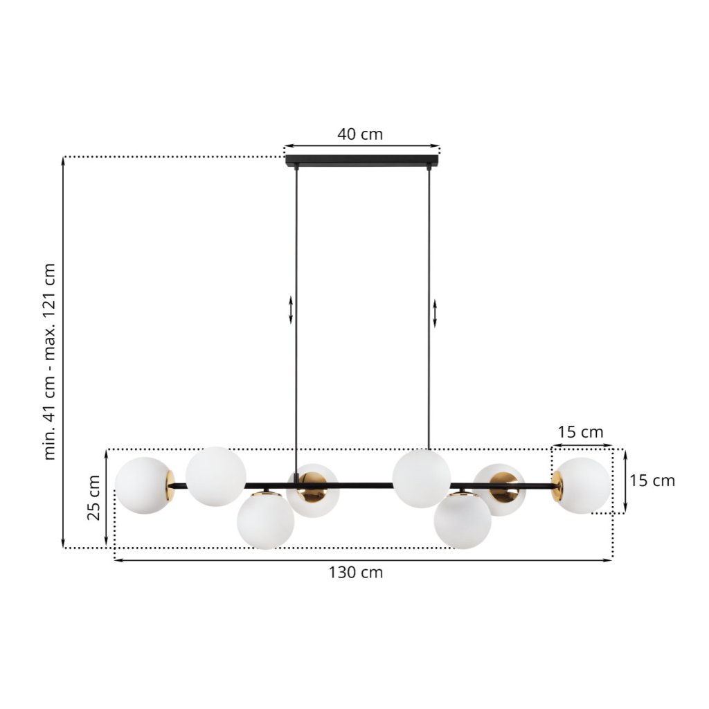 Závěsné svítidlo Florence, 8x bílé skleněné stínítko, B/G