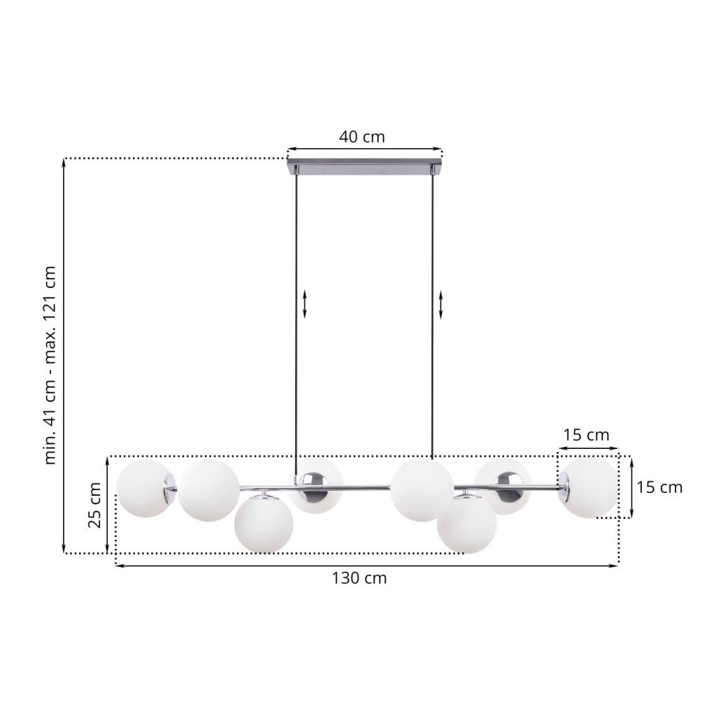 Závěsné svítidlo Florence, 8x bílé skleněné stínítko, ch