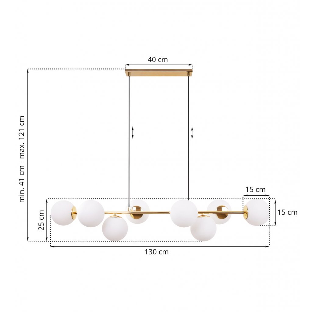 Závěsné svítidlo Florence, 8x bílé skleněné stínítko, g