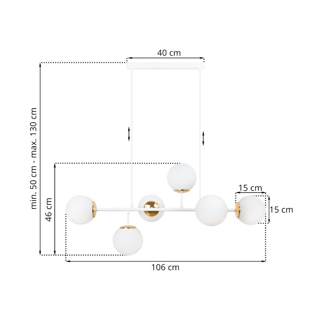 Závěsné svítidlo Florence 1, 6x bílé skleněné stínítko, W/G