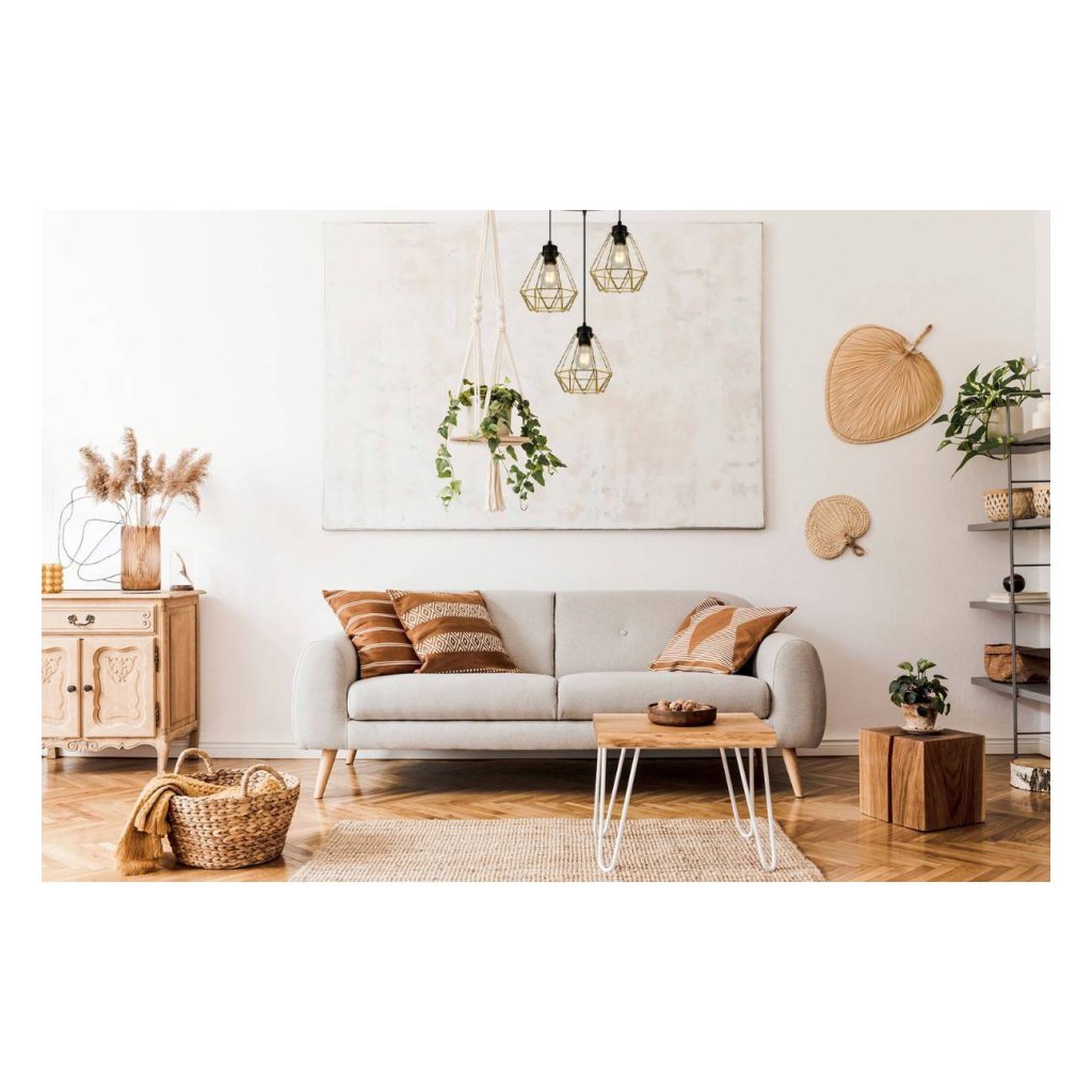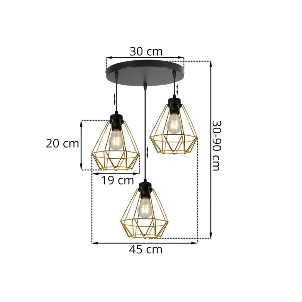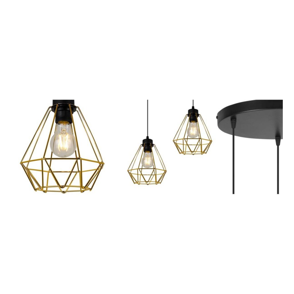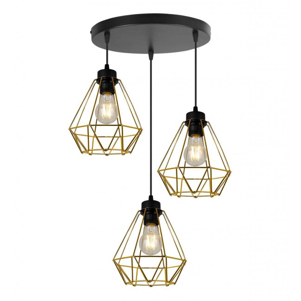 Závěsné svítidlo Fusion, 3x zlaté drátěné stínítko,