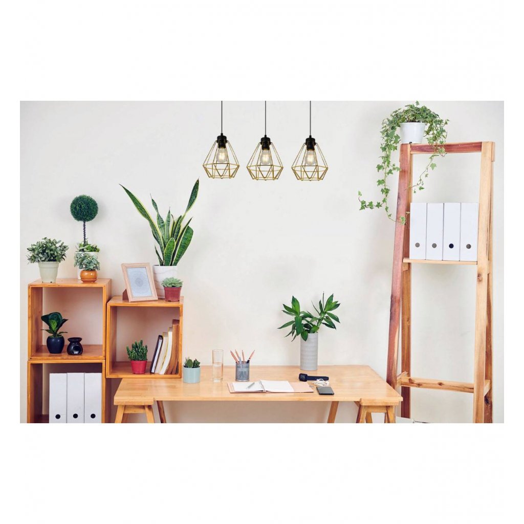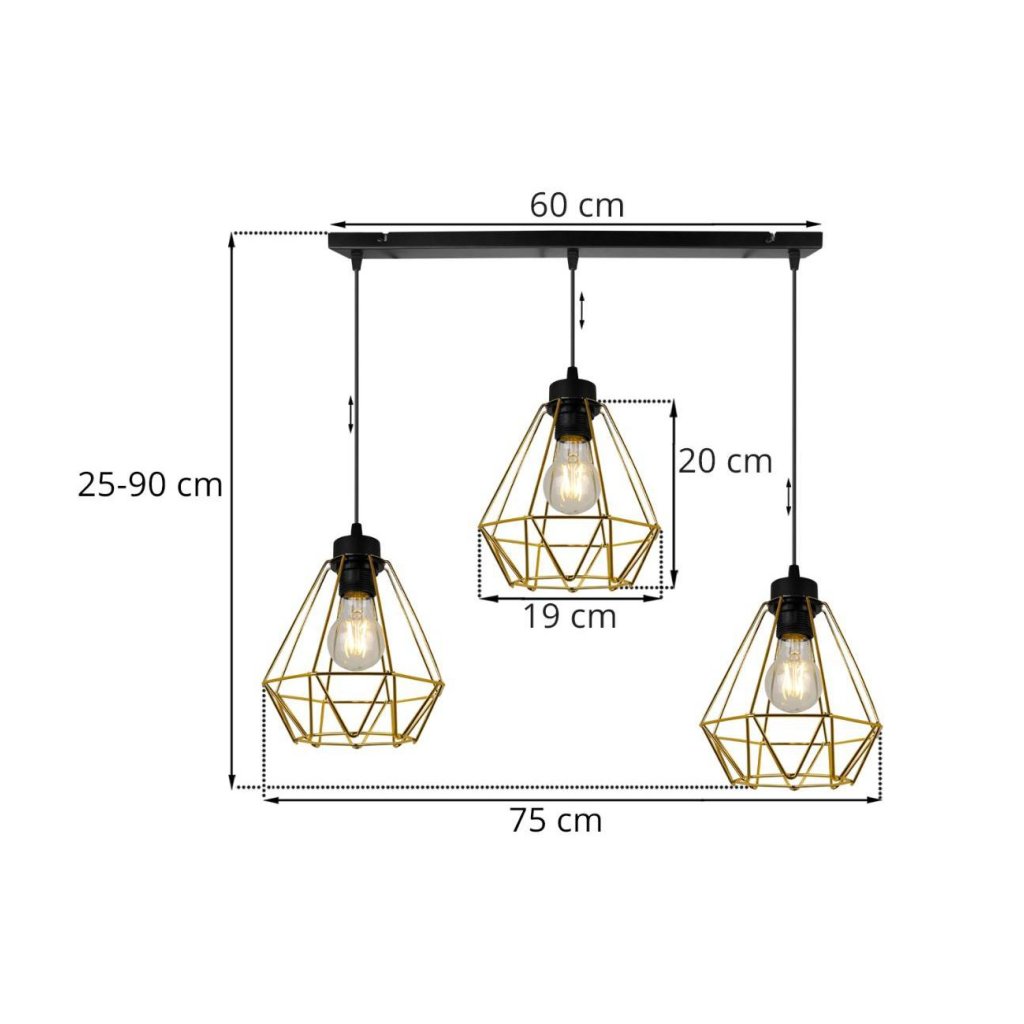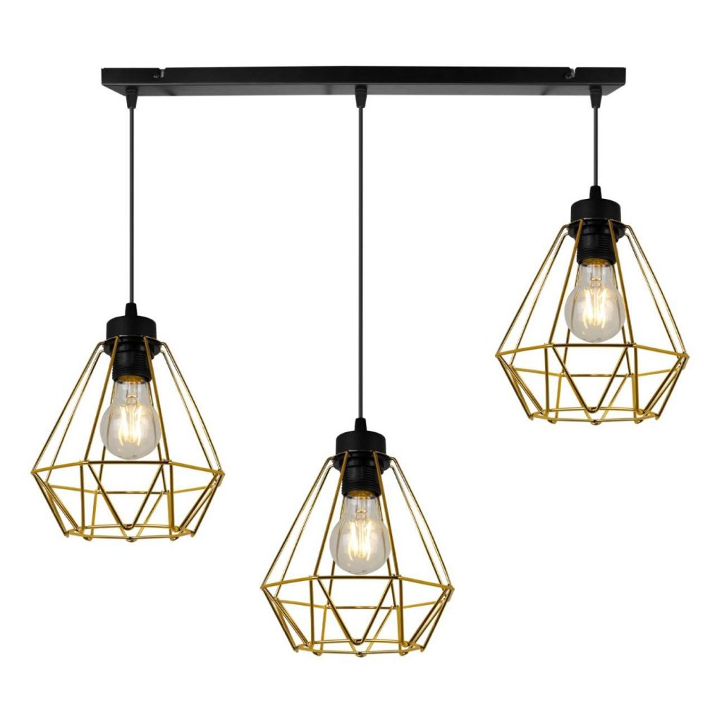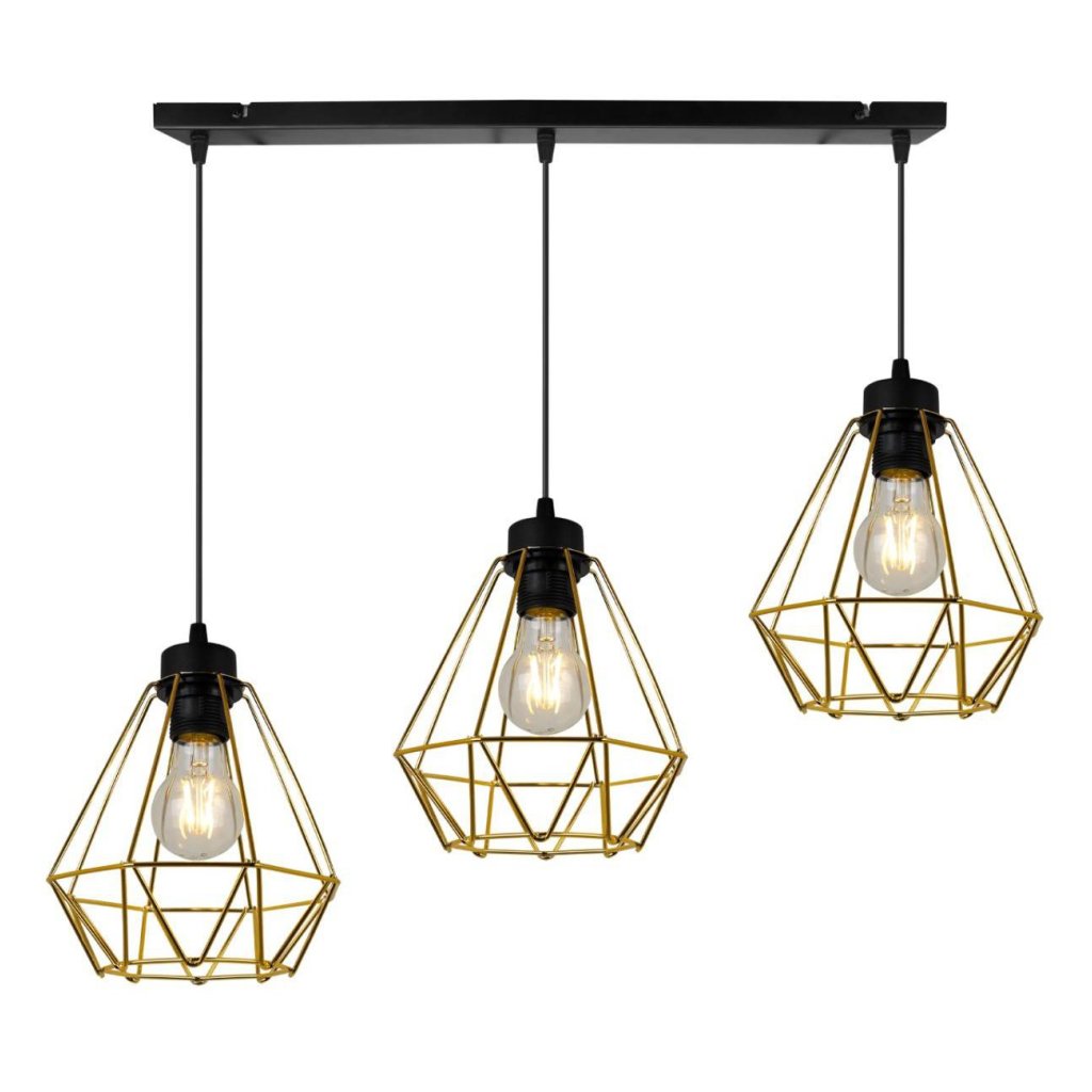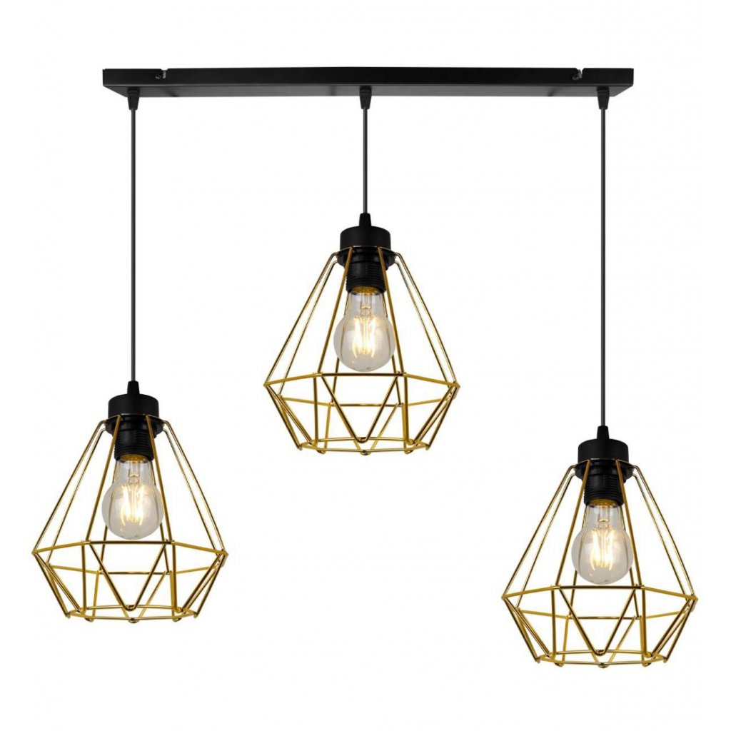 Závěsné svítidlo Fusion, 3x zlaté drátěné stínítko
