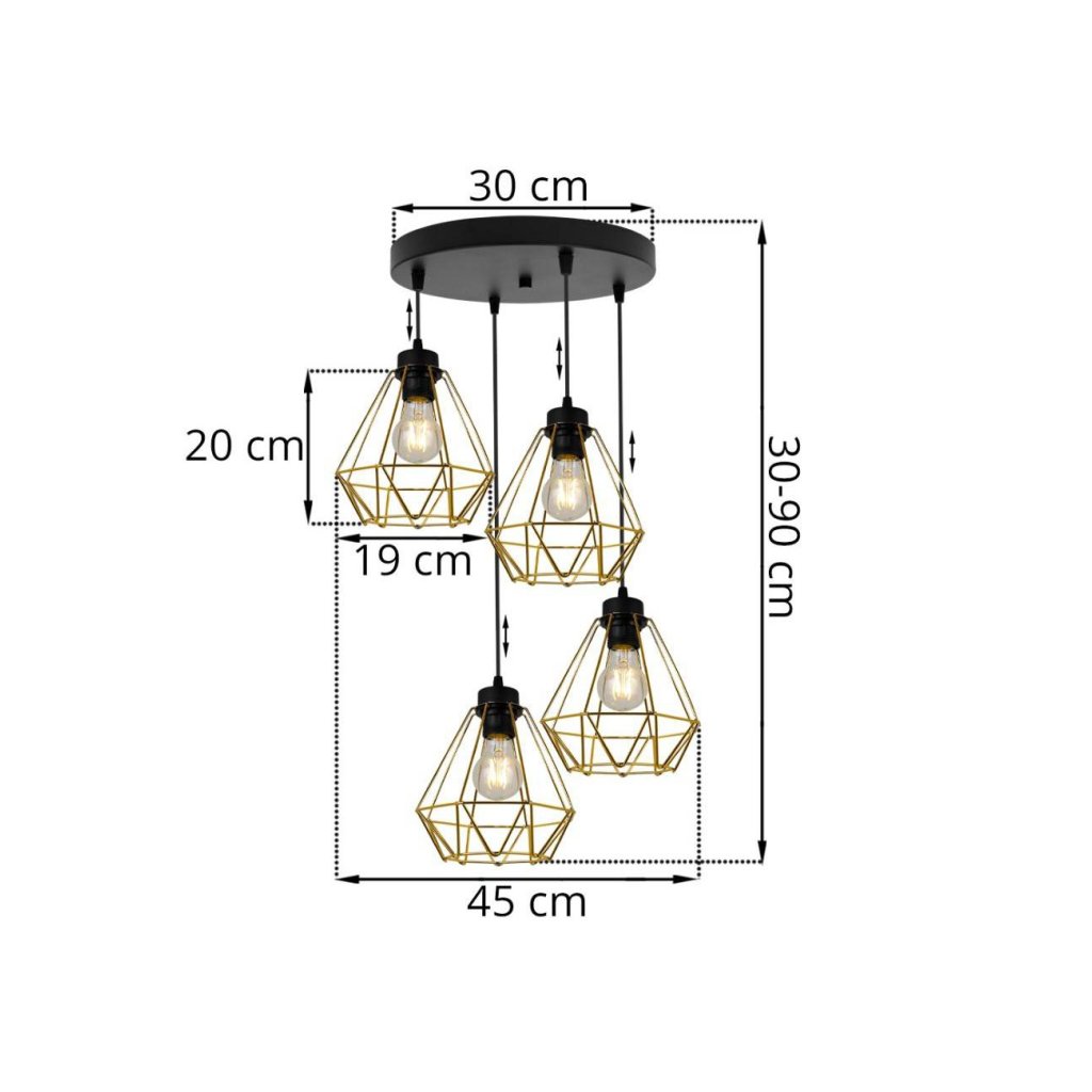 Závěsné svítidlo Fusion, 4x zlaté drátěné stínítko,