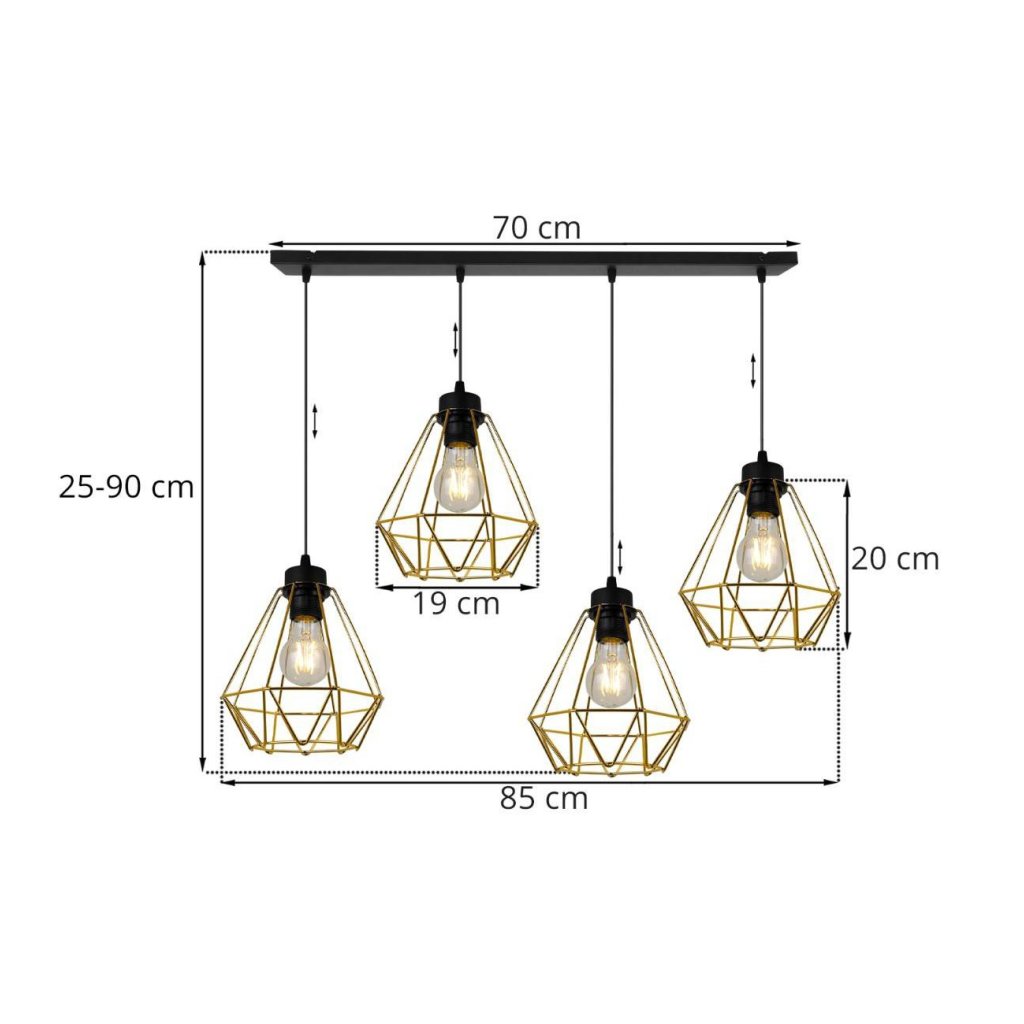 Závěsné svítidlo Fusion, 4x zlaté drátěné stínítko