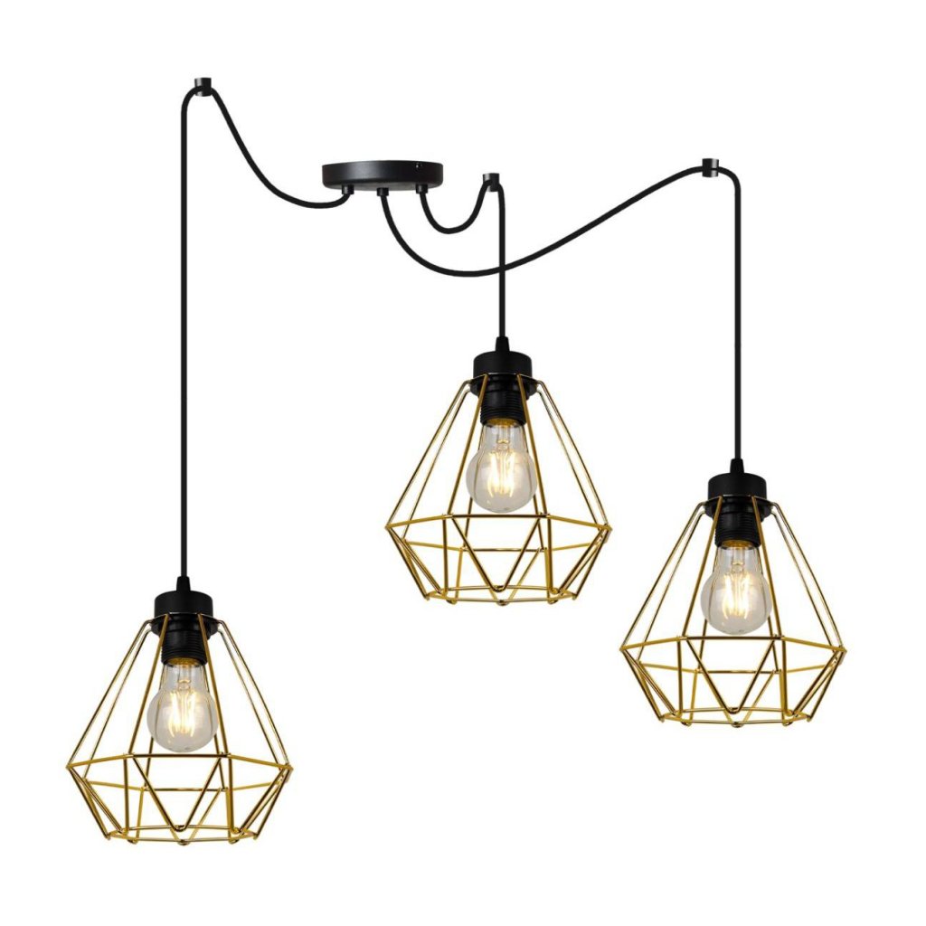 Závěsné svítidlo Fusion Spider, 3x zlaté drátěné stínítko