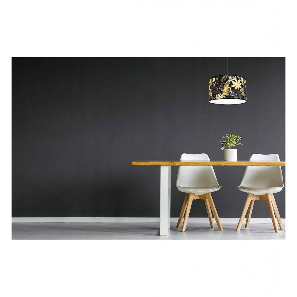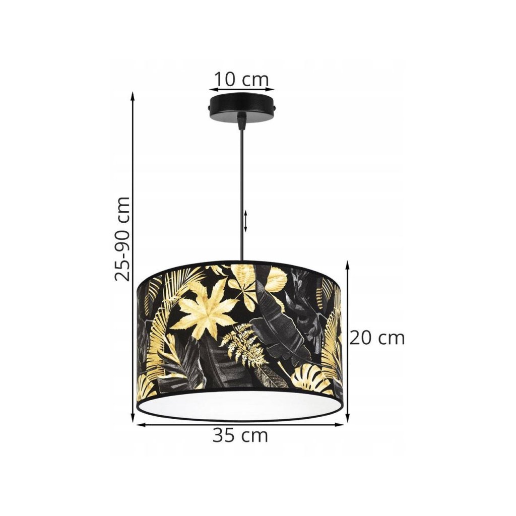 Závěsné svítidlo Gold Flowers, 1x černé textilní stínítko s květinovým vzorem, (fi 35cm)