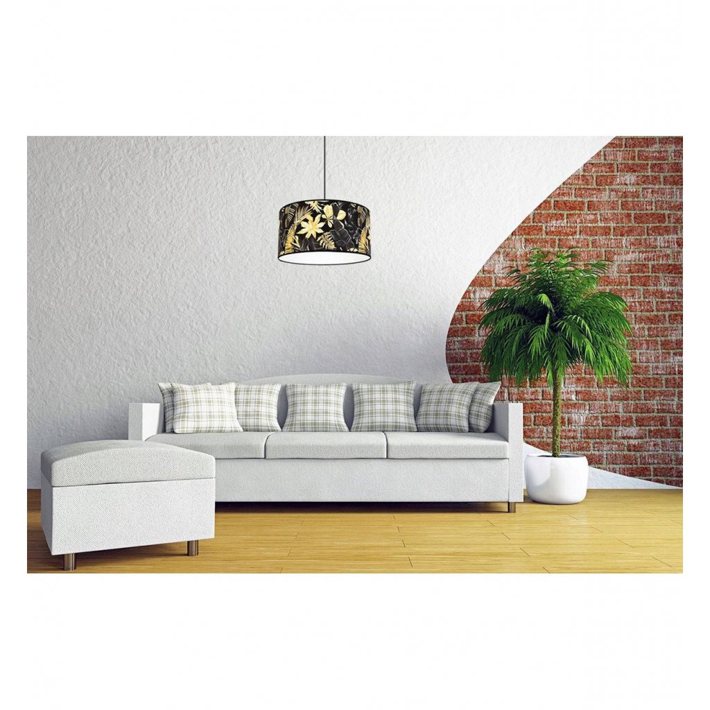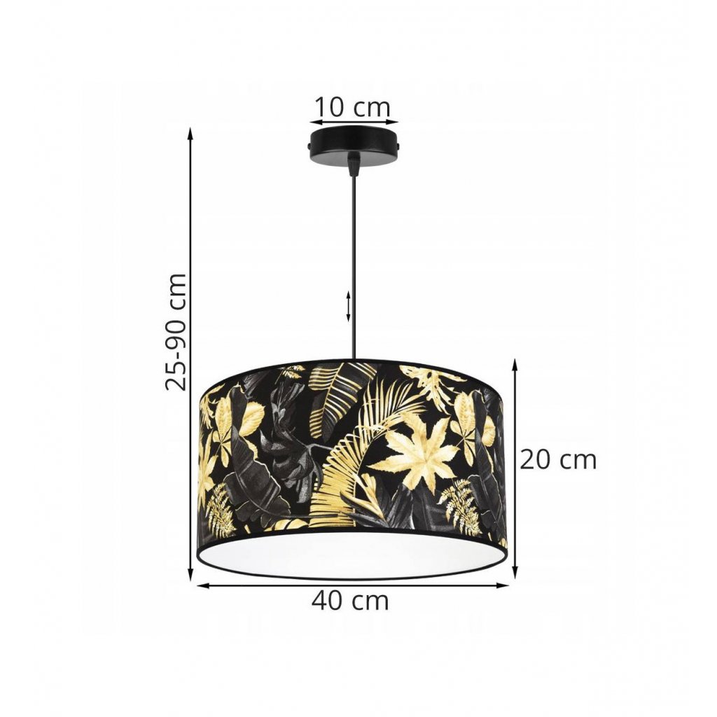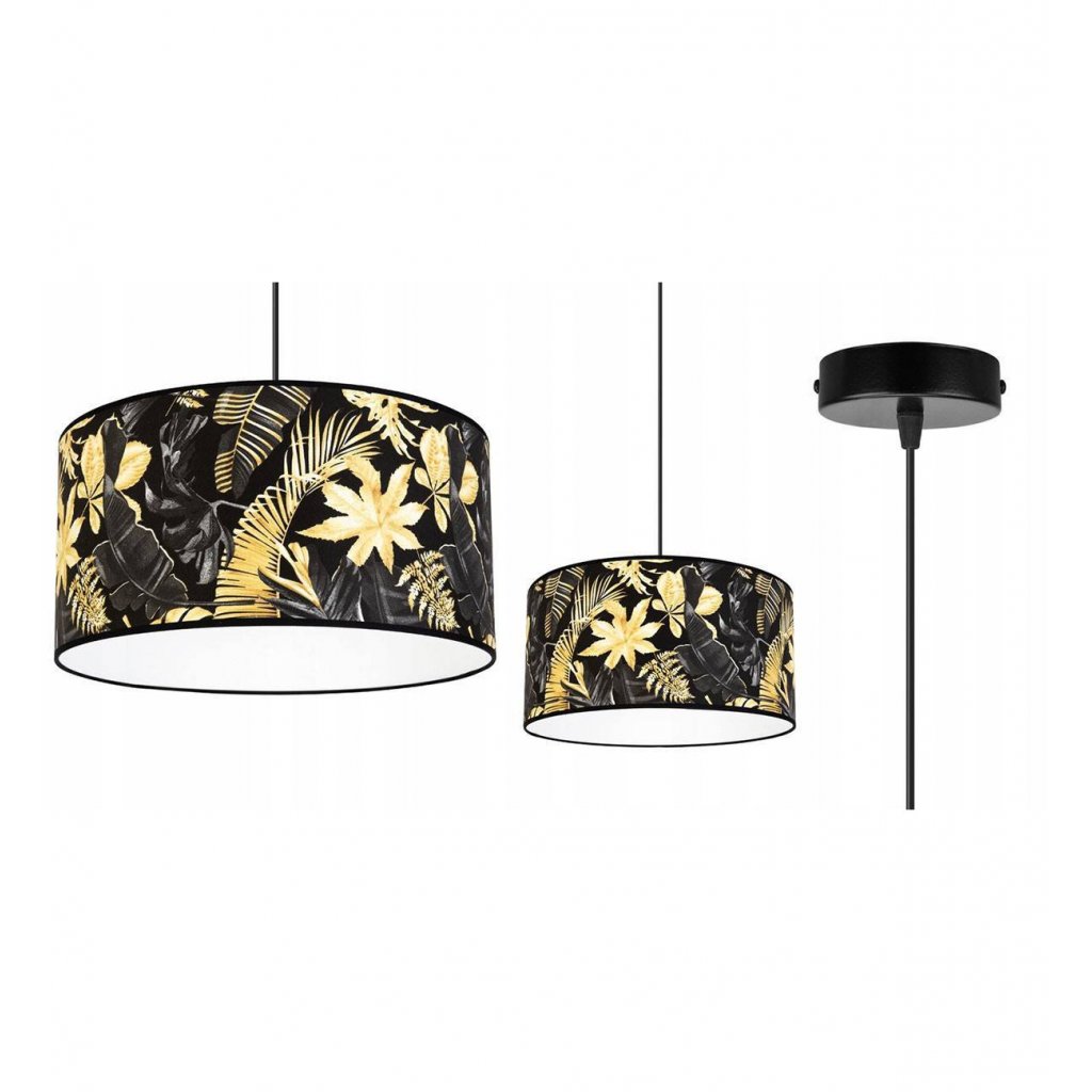 Závěsné svítidlo Gold Flowers, 1x černé textilní stínítko s květinovým vzorem, (fi 40cm)