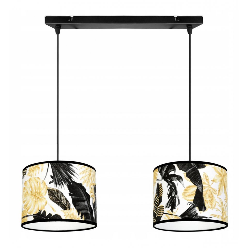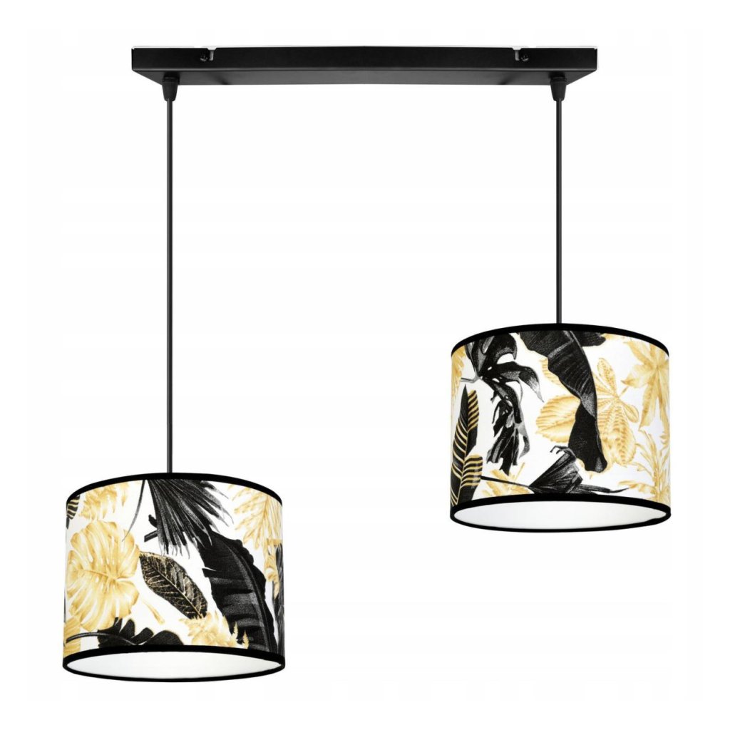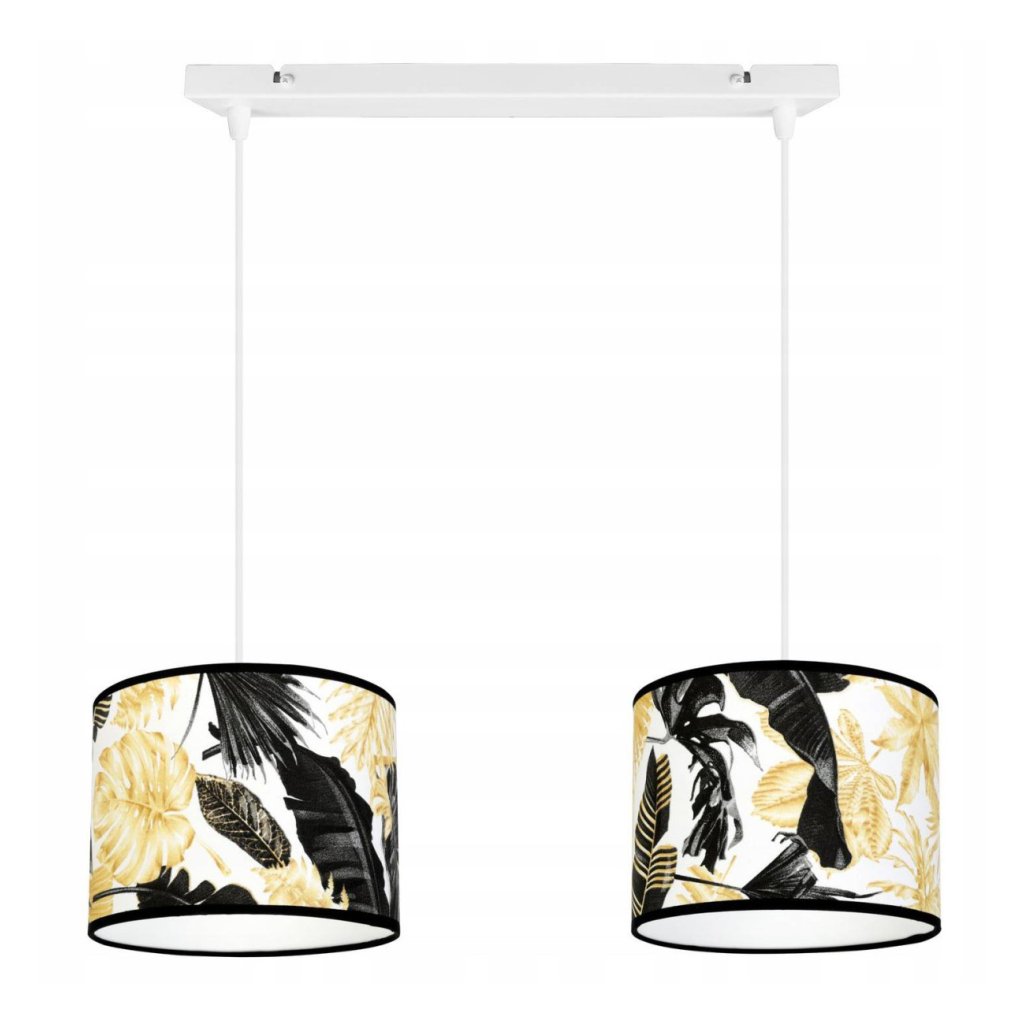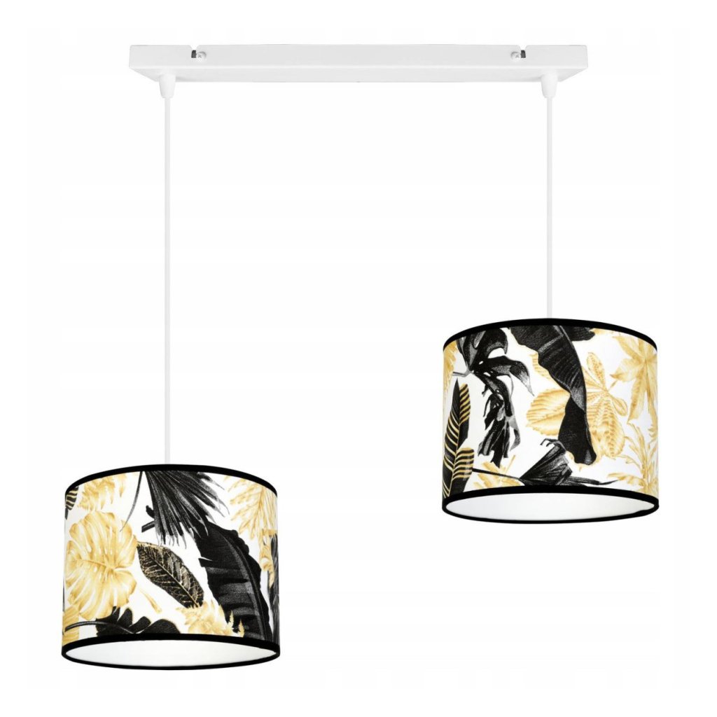 Závěsné svítidlo Gold Flowers, 2x bílé textilní stínítko s květinovým vzorem, (výběr ze 2 barev konstrukce)