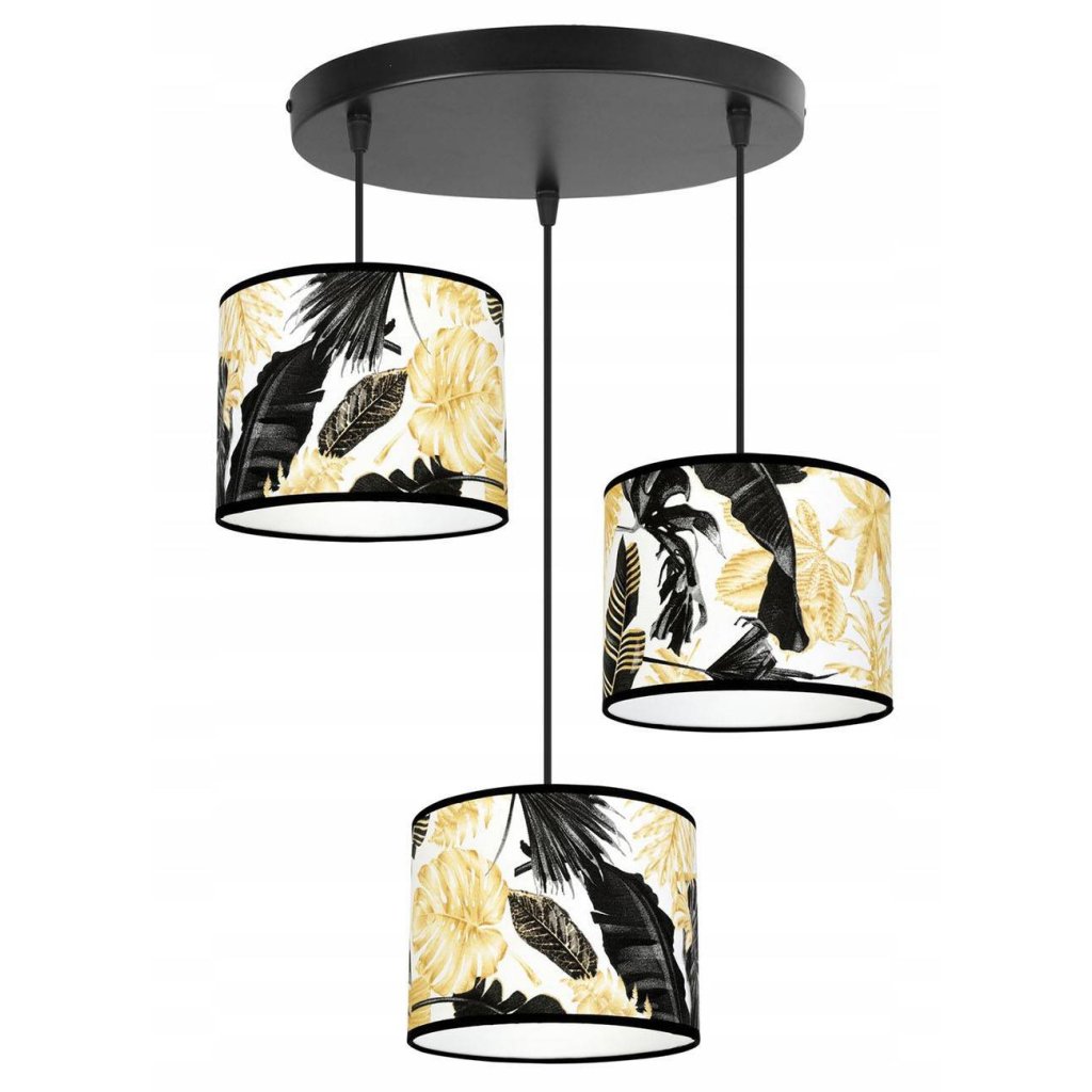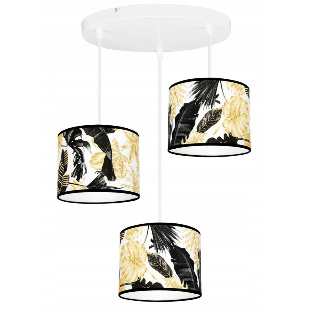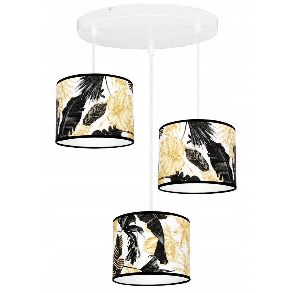 Závěsné svítidlo Gold Flowers, 3x bílé textilní stínítko s květinovým vzorem, (výběr ze 2 barev konstrukce), o