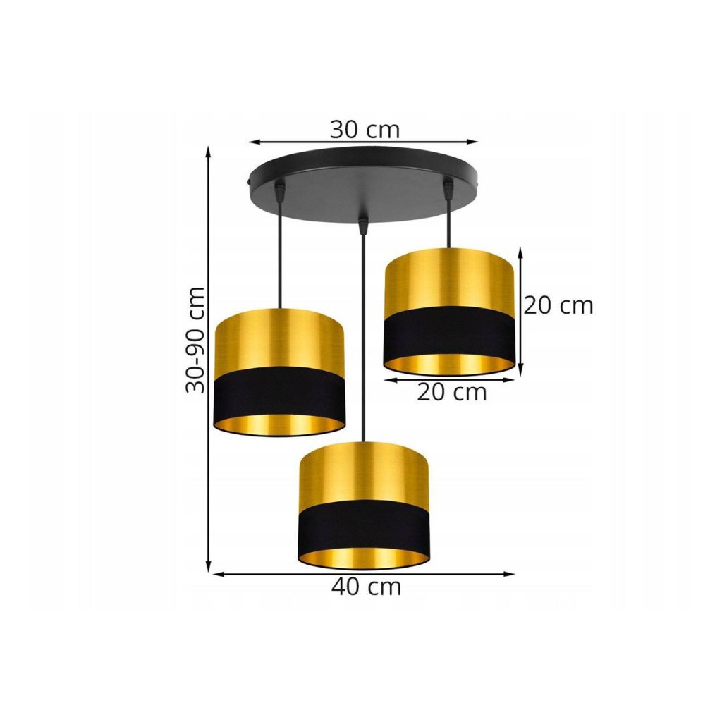 Závěsné svítidlo Golden, 3x zlaté textilní stínítko (mix 2 barev), (výběr ze 2 barev konstrukce), o