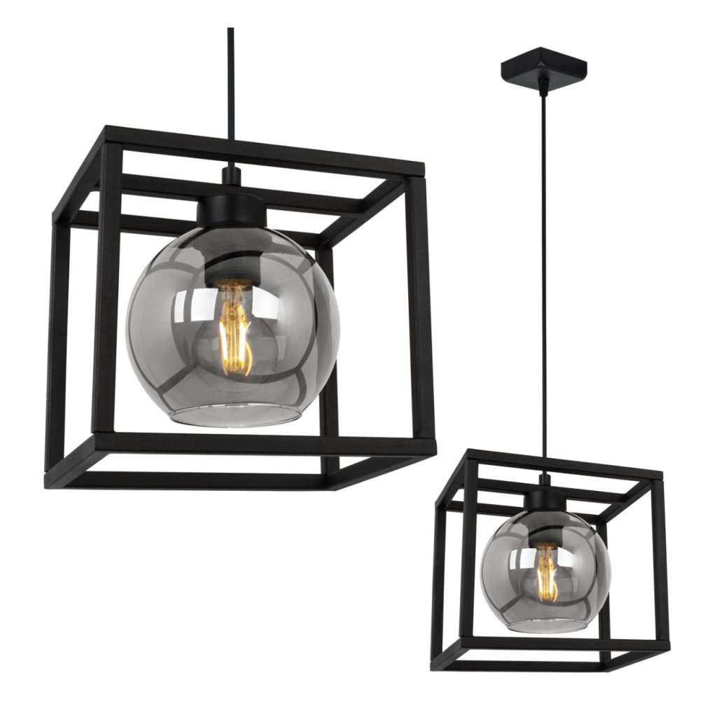 Závěsné svítidlo Haga Cage, 1x grafitové skleněné stínítko v kovovém rámu