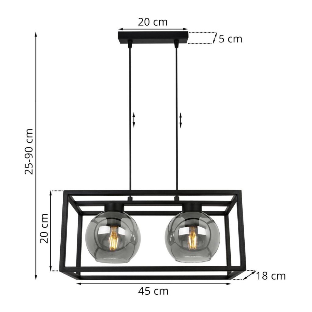 Závěsné svítidlo Haga Cage, 2x grafitové skleněné stínítko v kovovém rámu