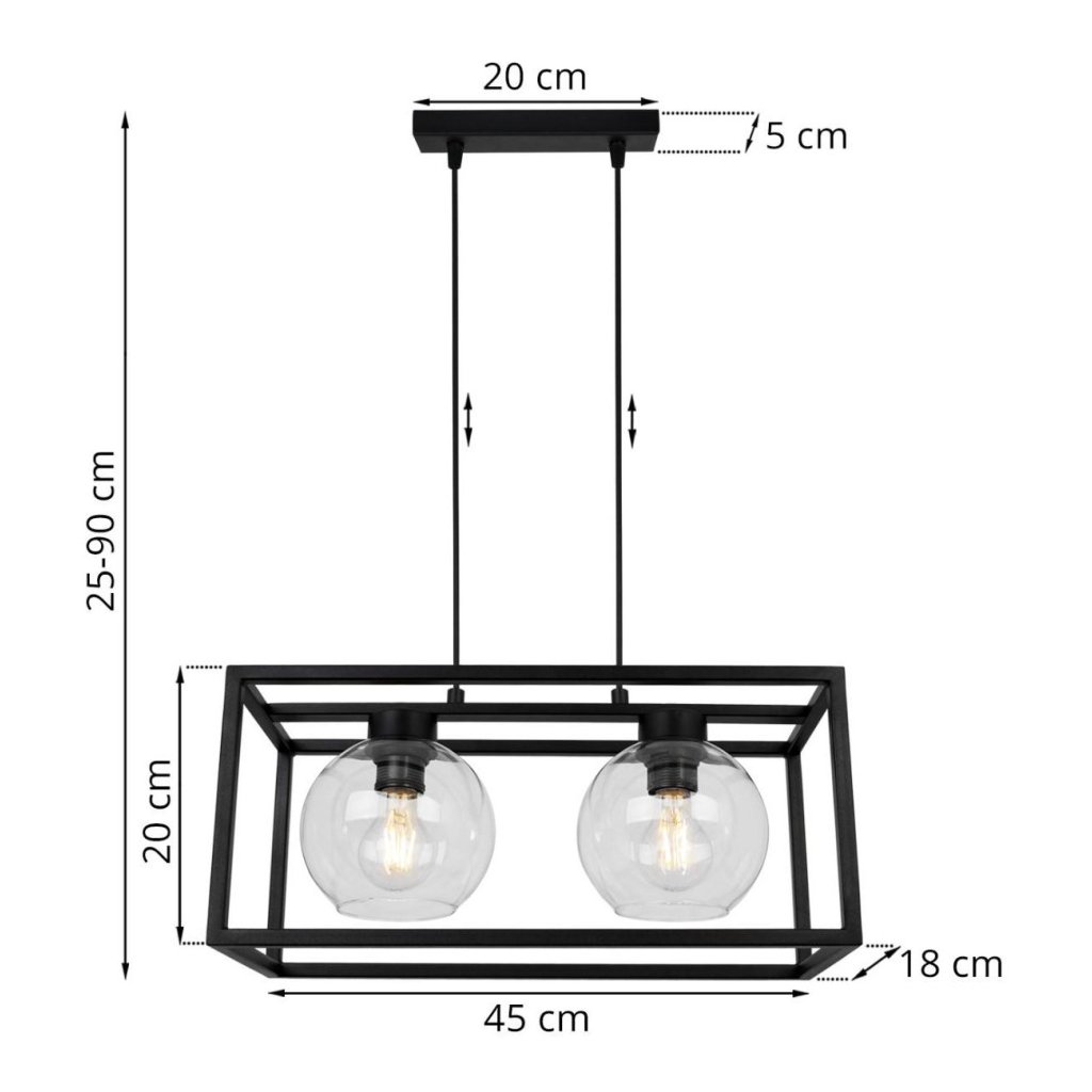 Závěsné svítidlo Haga Cage, 2x transparentní skleněné stínítko v kovovém rámu