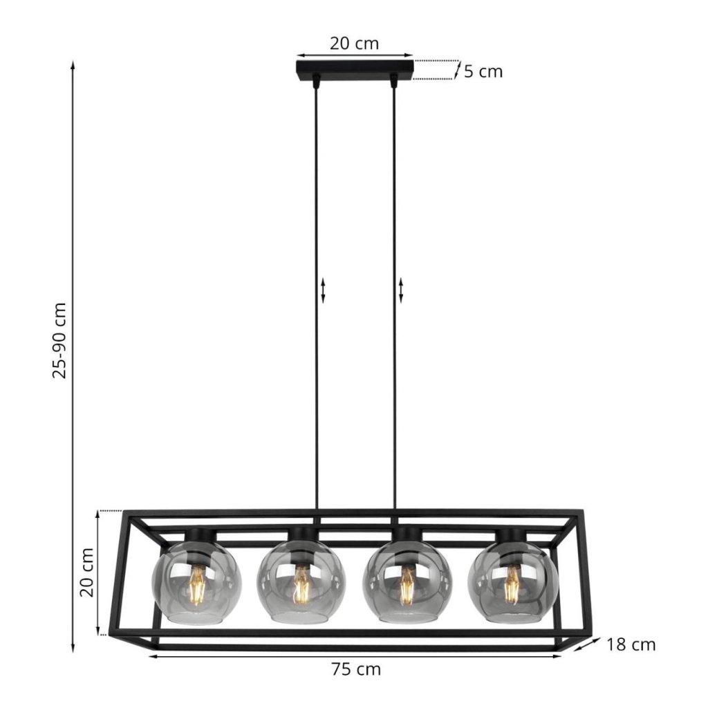 Závěsné svítidlo Haga Cage, 4x grafitové skleněné stínítko v kovovém rámu