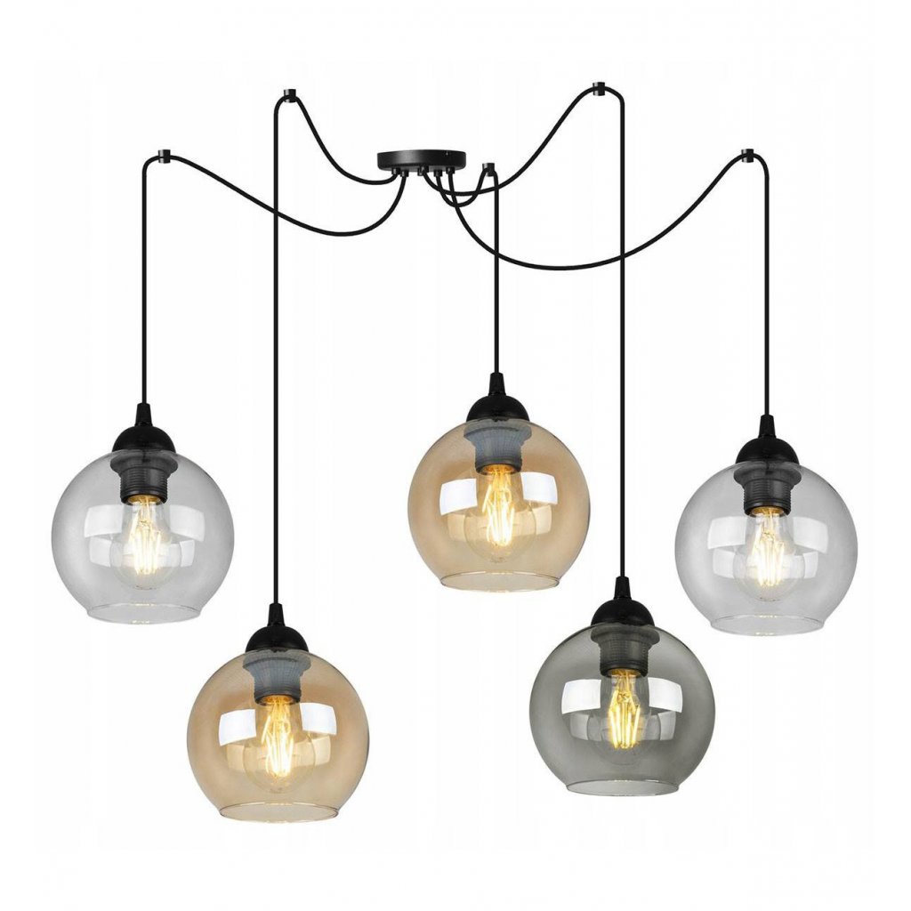 Závěsné svítidlo Haga Spider, 5x skleněné stínítko (mix 3 barev)