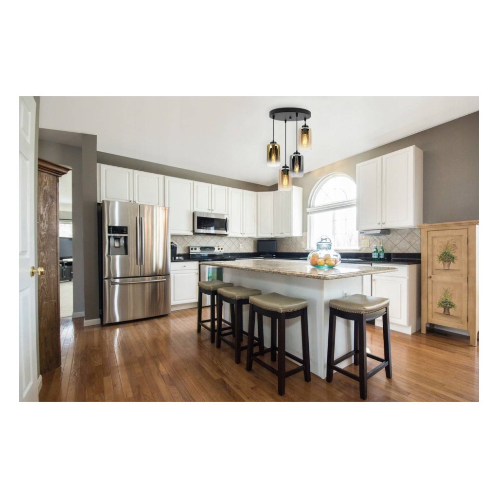 Závěsné svítidlo Hella, 4x skleněné stínítko (mix 3 barev),