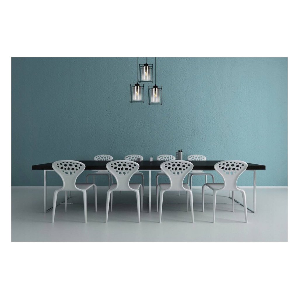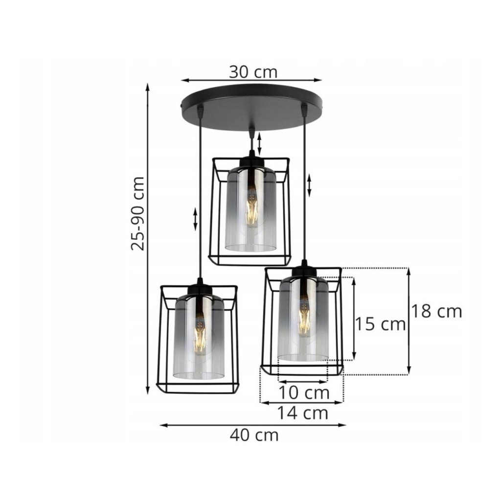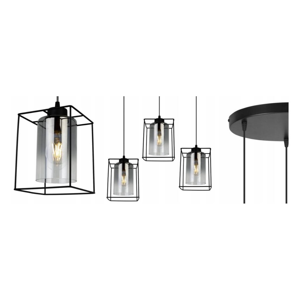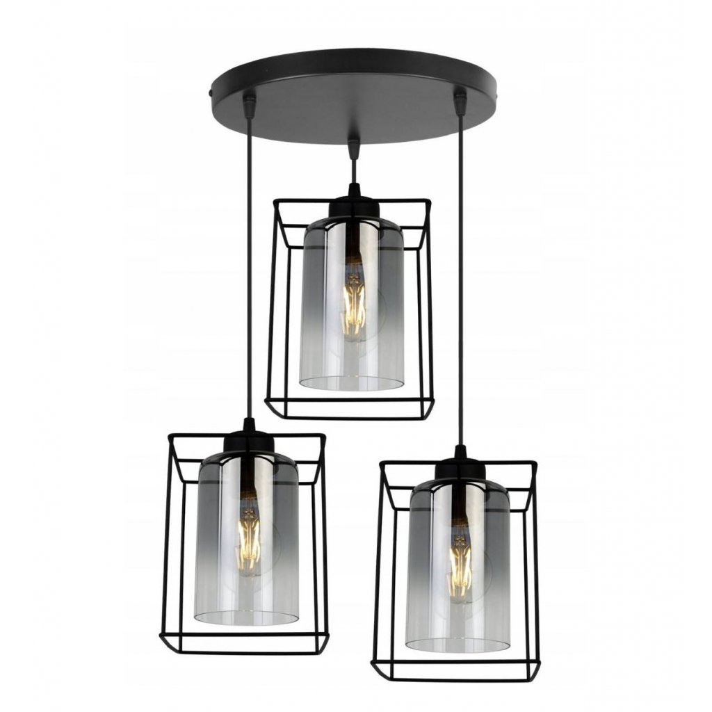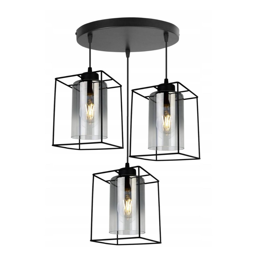 Závěsné svítidlo Hella Cage, 3x grafitové skleněné stínítko v kovovém rámu,