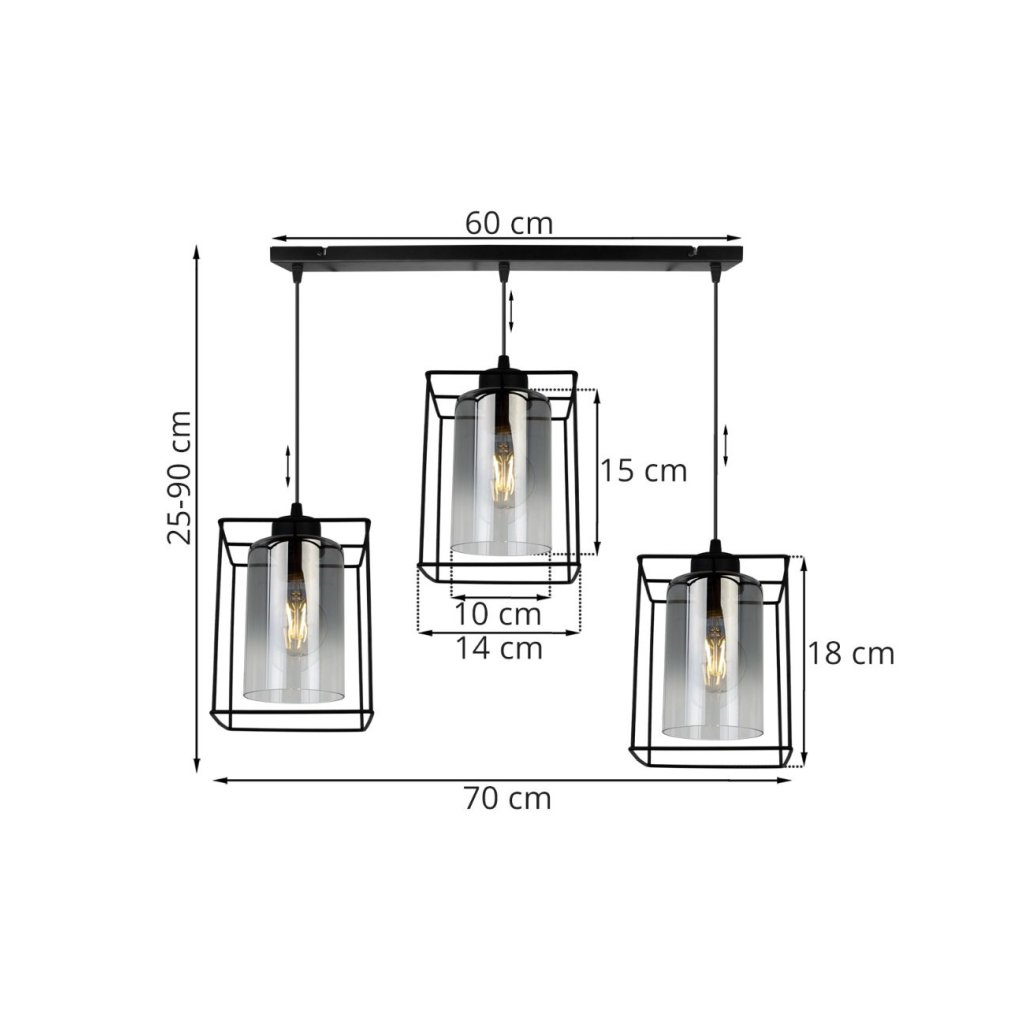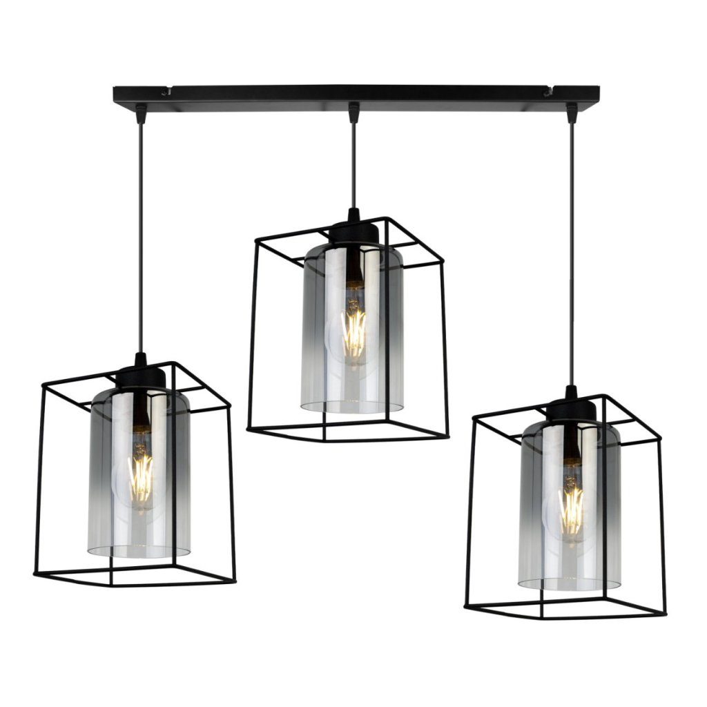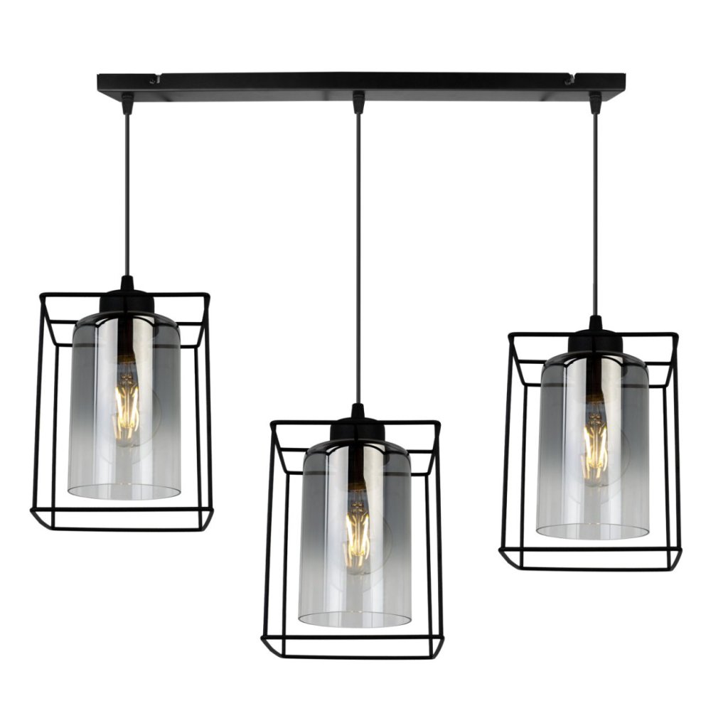 Závěsné svítidlo Hella Cage, 3x grafitové skleněné stínítko v kovovém rámu