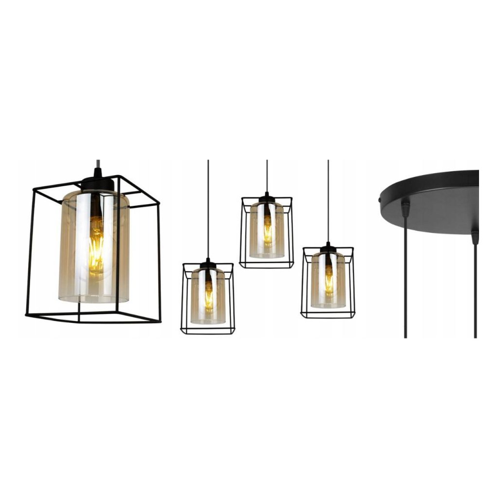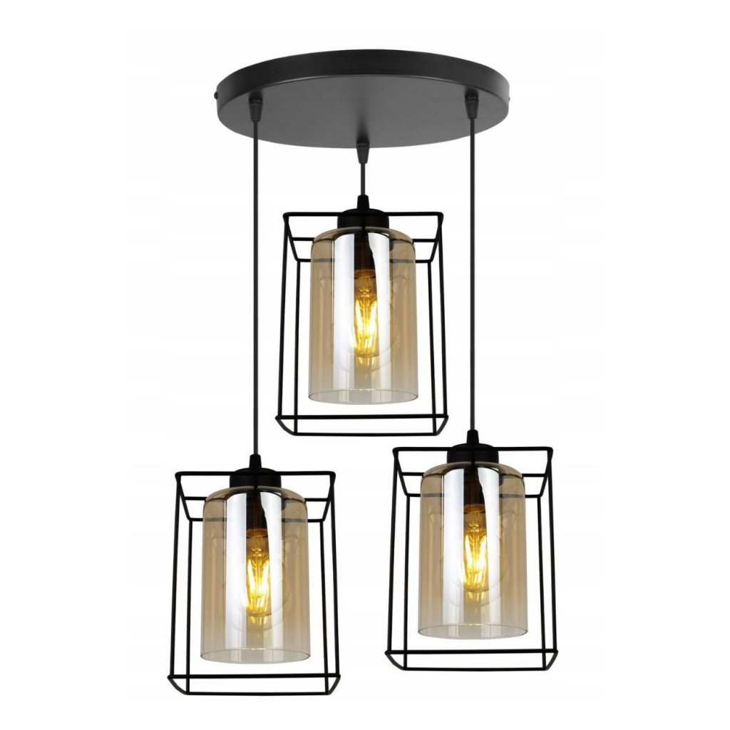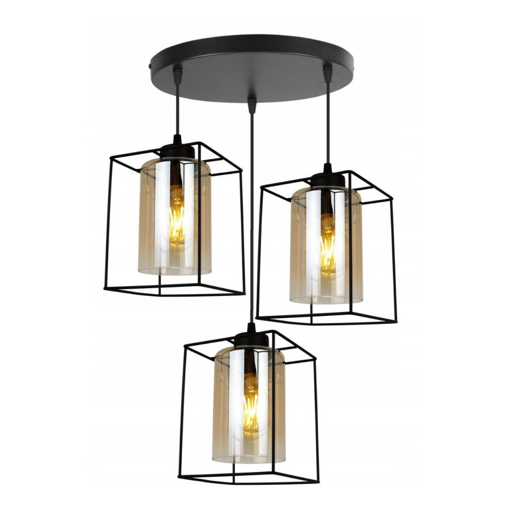 Závěsné svítidlo Hella Cage, 3x medové skleněné stínítko v kovovém rámu,