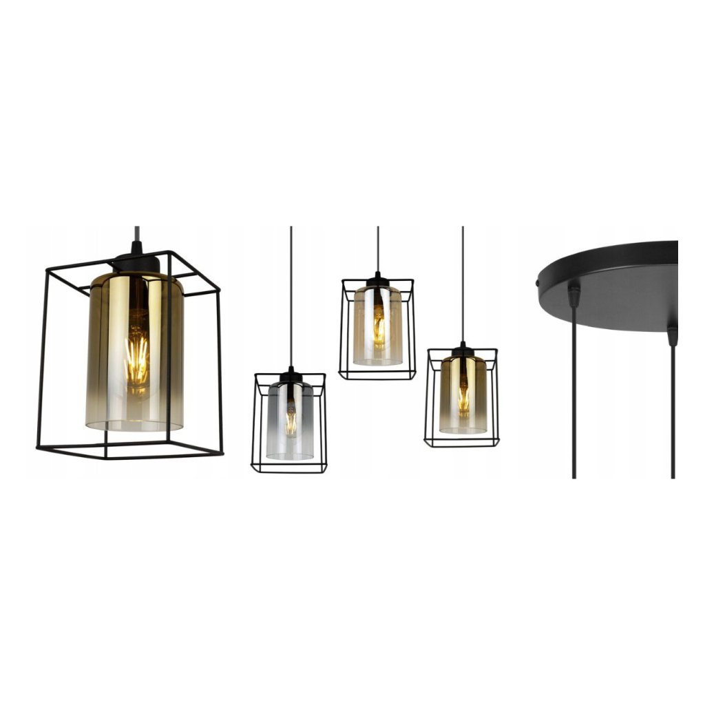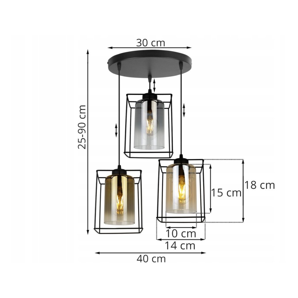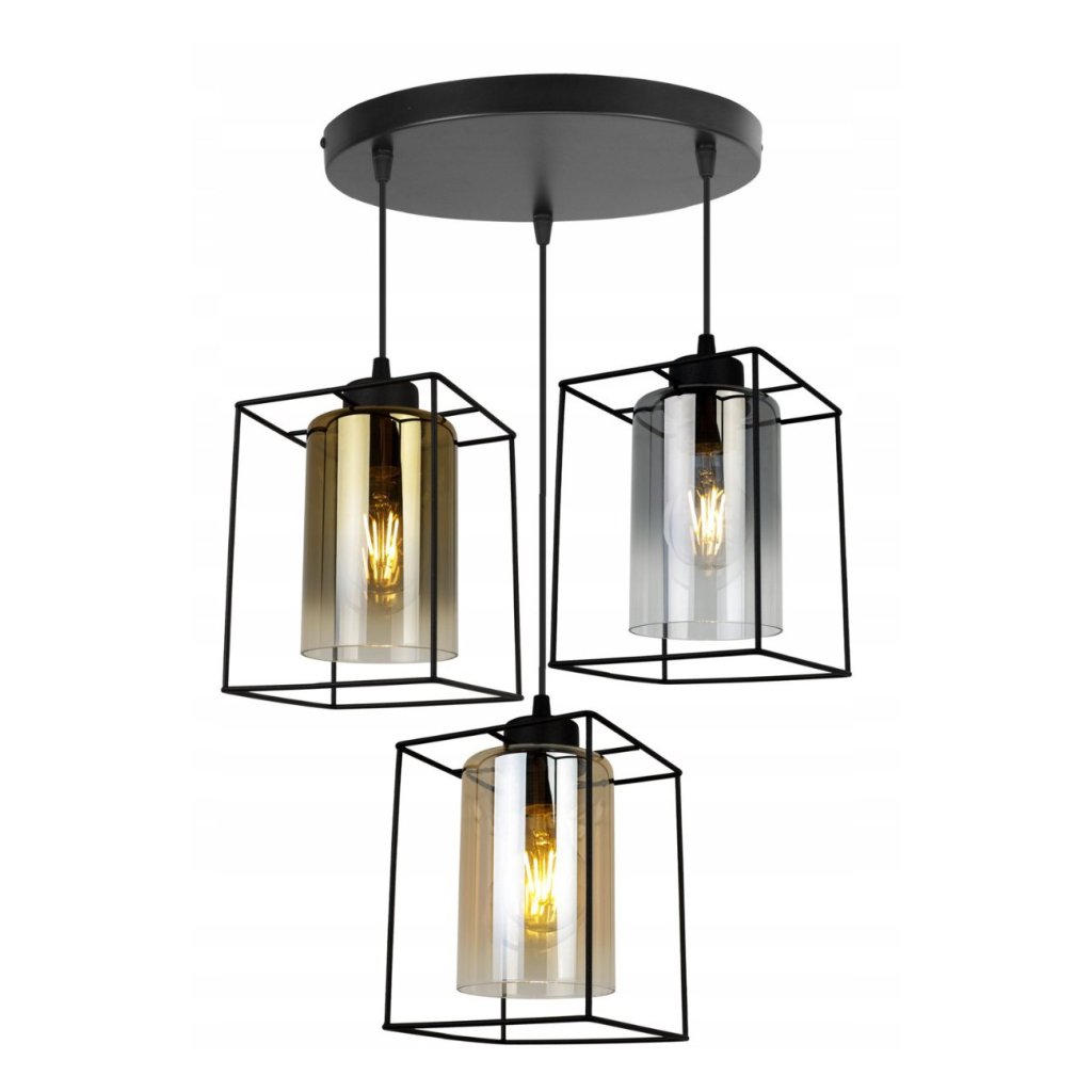 Závěsné svítidlo Hella Cage, 3x skleněné stínítko (mix 3 barev) v kovovém rámu,