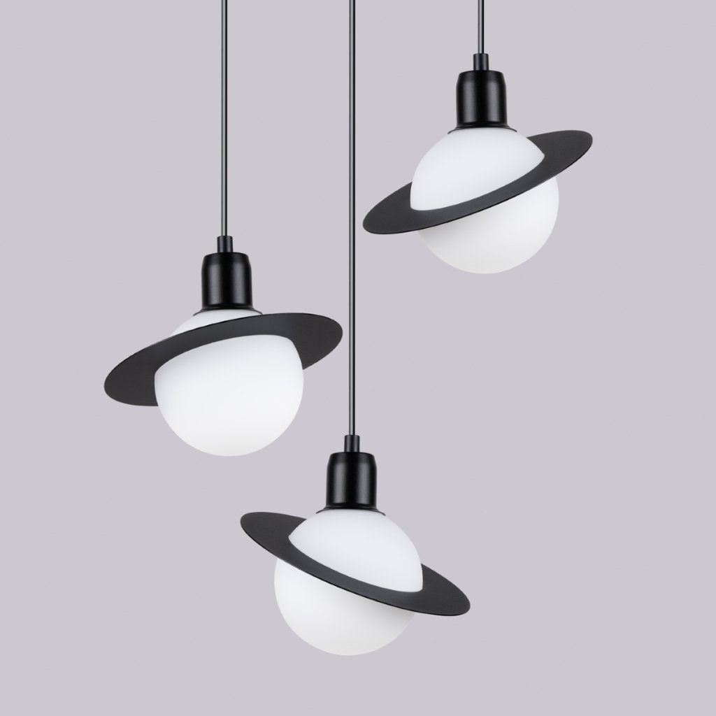 Závěsné svítidlo Hyperion, 3x skleněné/černé kovové stínítko,