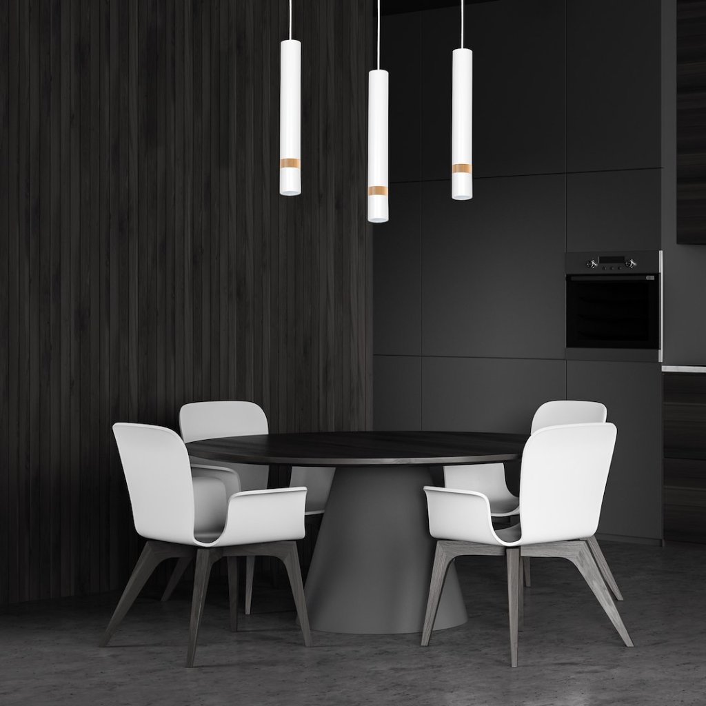 Trojité provedení poskytuje dostatek světla pro větší prostory , jako jsou jídelny, kuchyně nebo otevřené obývací zóny. Minimalistická forma v kombinaci s čistou barvou zajišťuje univerzální využití – svítidlo skvěle zapadne do moderních i elegantně zařízených domácností , kde je kladen důraz na detail a světlo jako designový prvek.