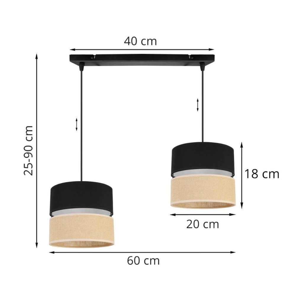 Závěsné svítidlo Juta, 2x jutové/černé textilní stínítko, b