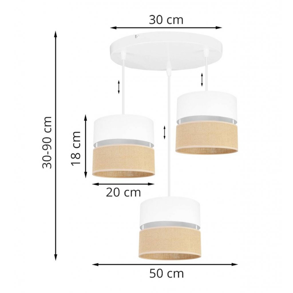 Závěsné svítidlo Juta, 3x jutové/bílé textilní stínítko, o, w