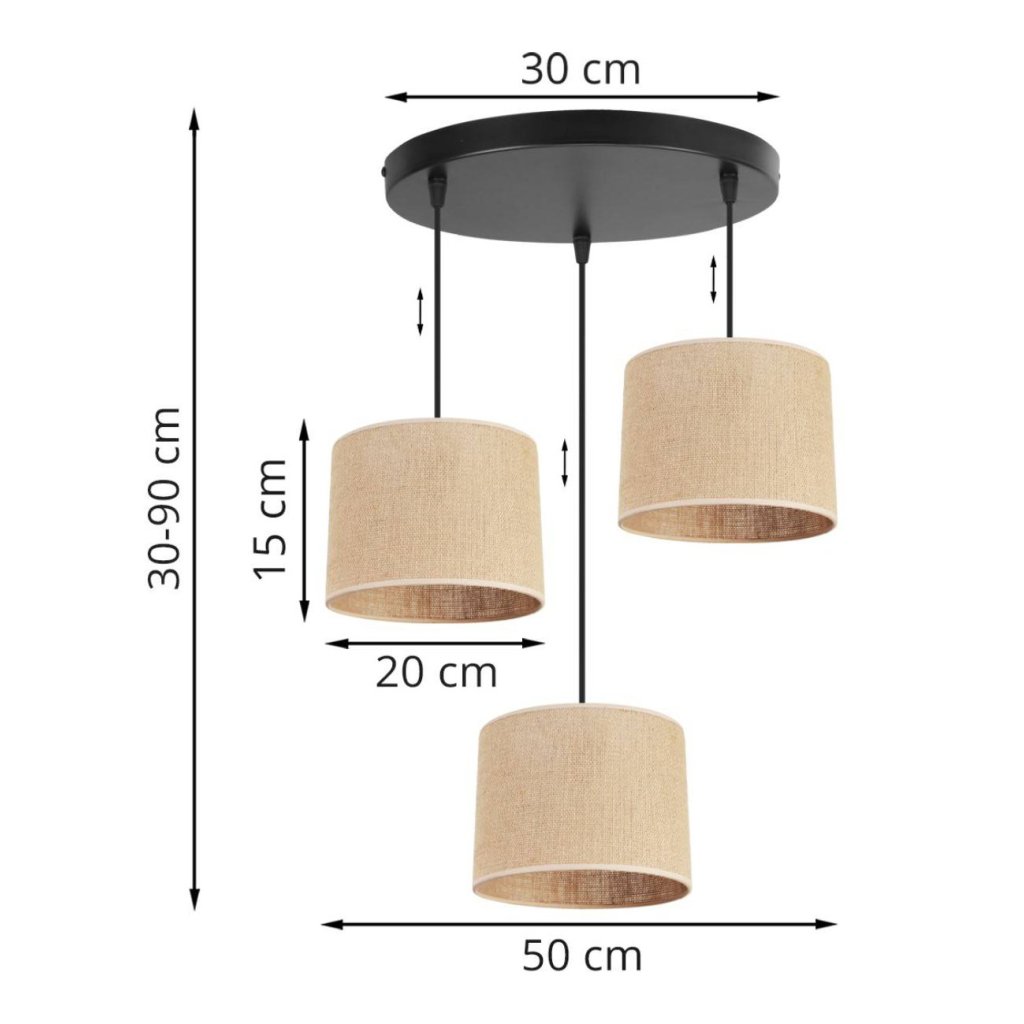 Závěsné svítidlo Juta, 3x jutové stínítko, (výběr ze 2 barev konstrukce), o