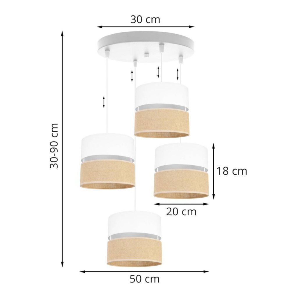 Závěsné svítidlo Juta, 4x jutové/bílé textilní stínítko, o, w