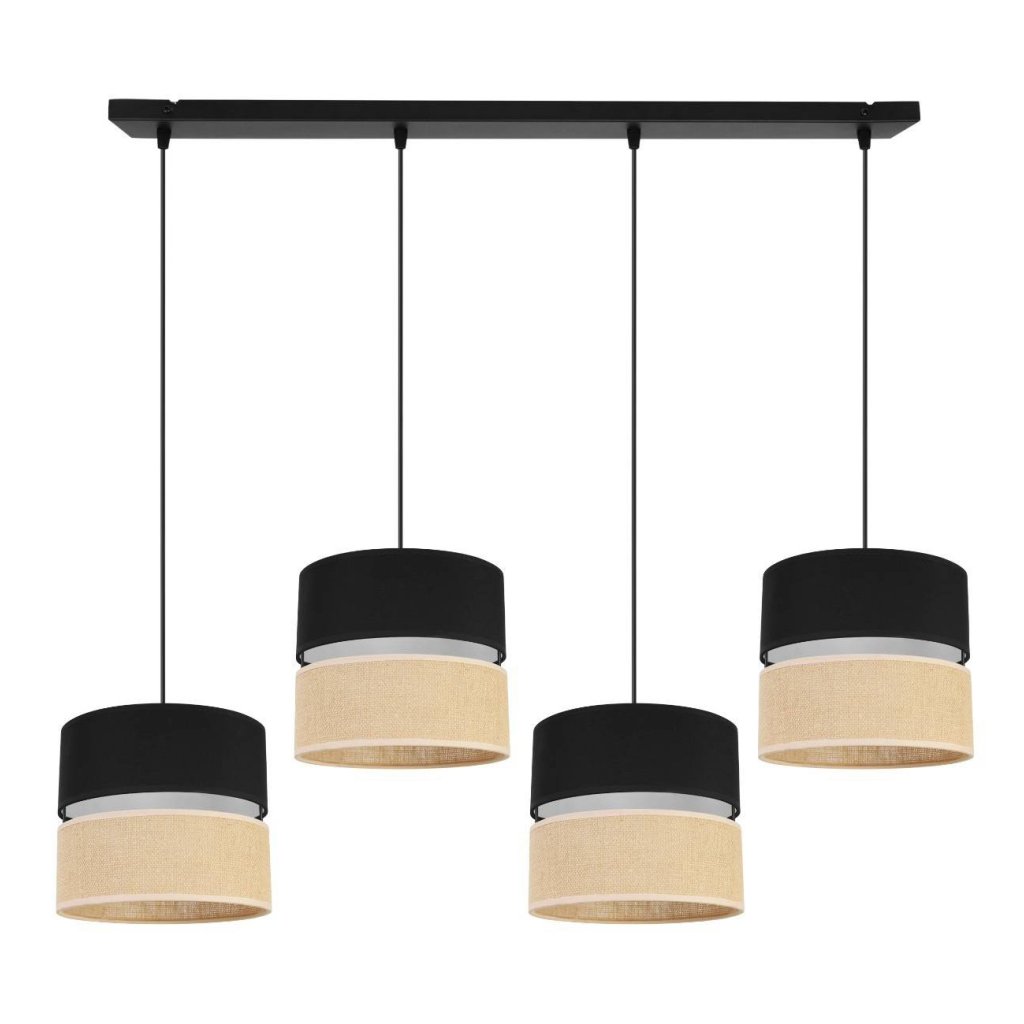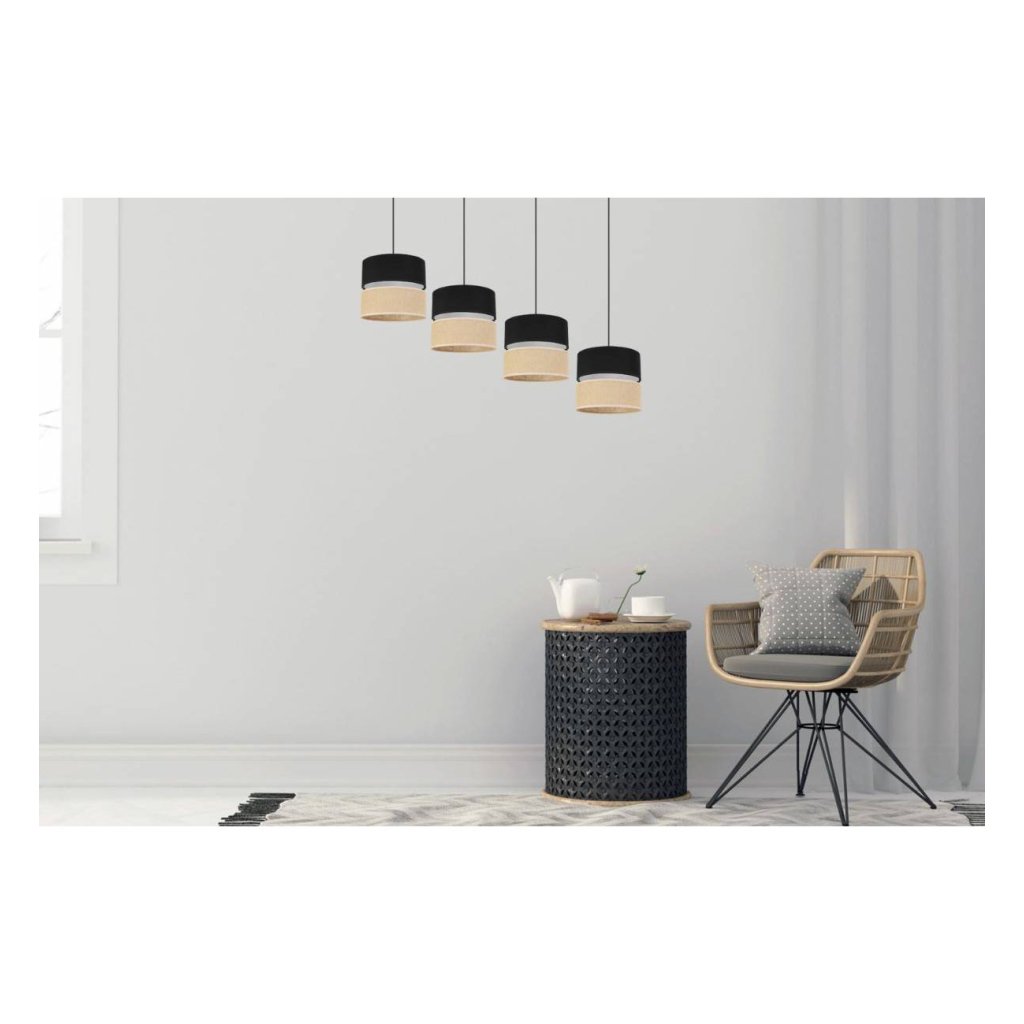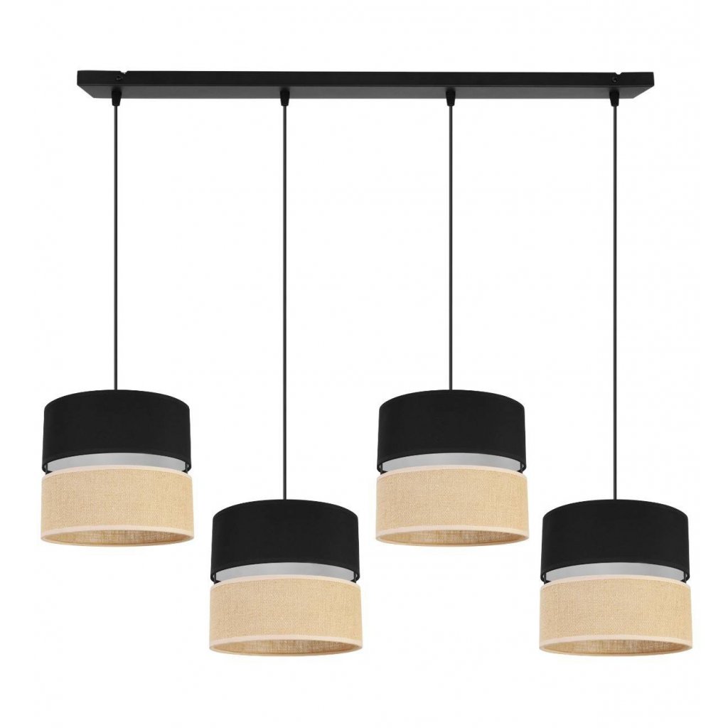 Závěsné svítidlo Juta, 4x jutové/černé textilní stínítko, b